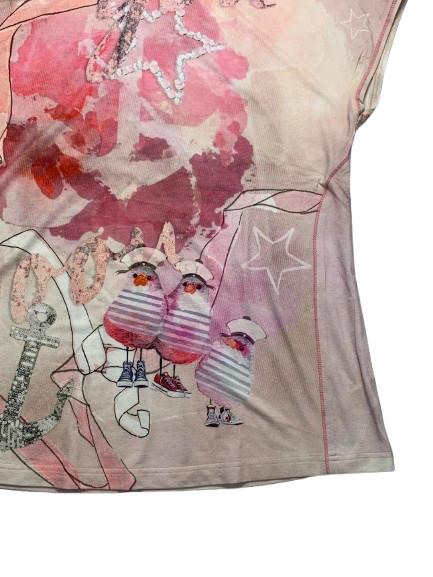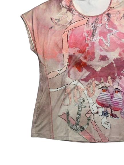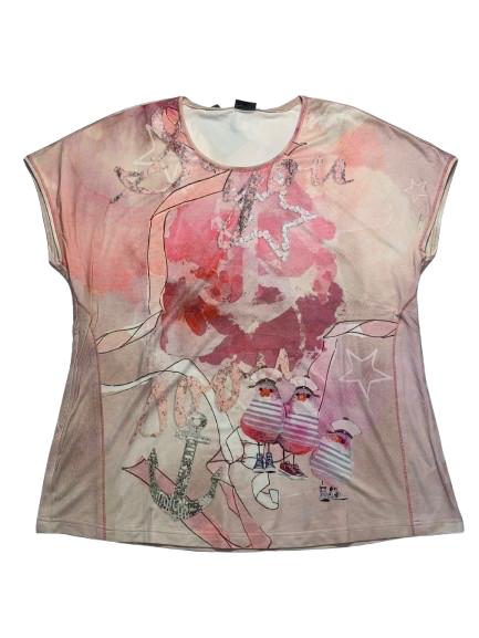 T-shirt donna Barbara Lebek in viscosa girocollo manica scesa con stampa glamour