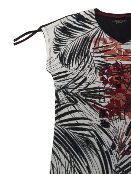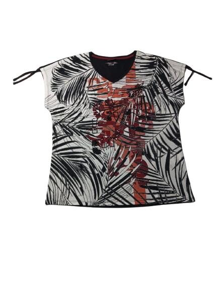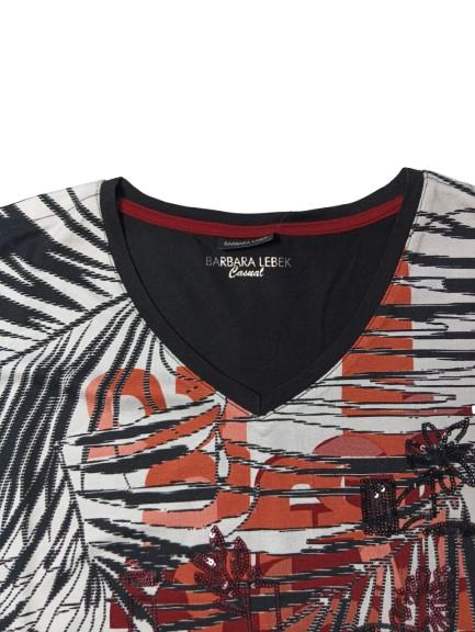 T-shirt donna Barbara Lebek in viscosa manica scesa con coulisse regolabile scollo a V stampa anteriore con applicazione di paillettes retro tinta unita