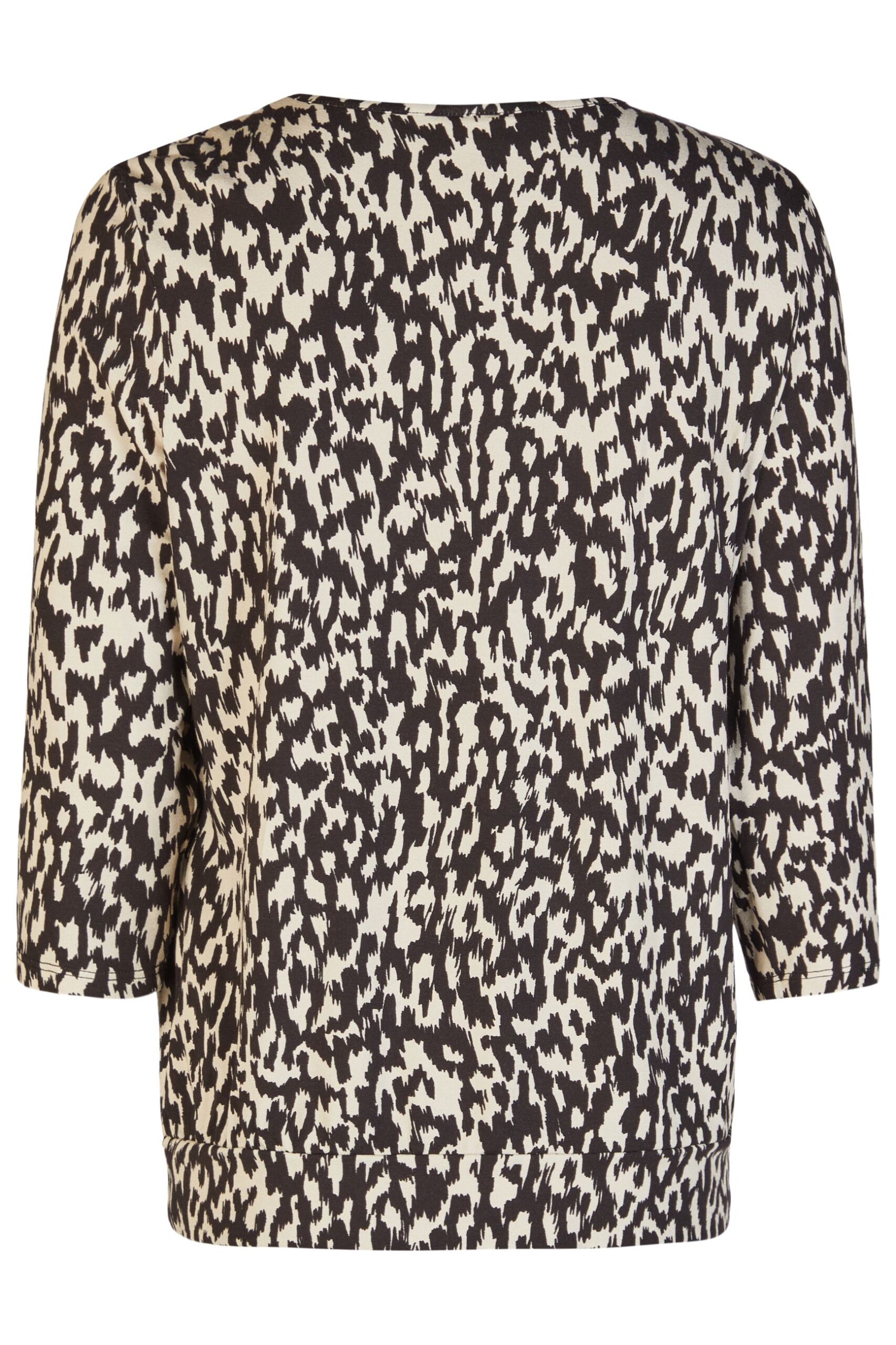 Blusa Barbara Lebek in viscosa dal design elegante e contemporaneo. Realizzata in morbida viscosa, assicura una vestibilità confortevole e leggera, ideale per l’uso quotidiano. La fantasia animalier nei caldi toni del marrone dona carattere e raffinatezza al capo. Il girocollo è impreziosito da pence sul seno che valorizzano la silhouette, mentre le maniche 3/4 offrono praticità e stile. Completa il design la fascia sul fondo, che garantisce una linea ordinata e una vestibilità impeccabile. Perfetta da abbinare a pantaloni o gonne per un look casual chic.