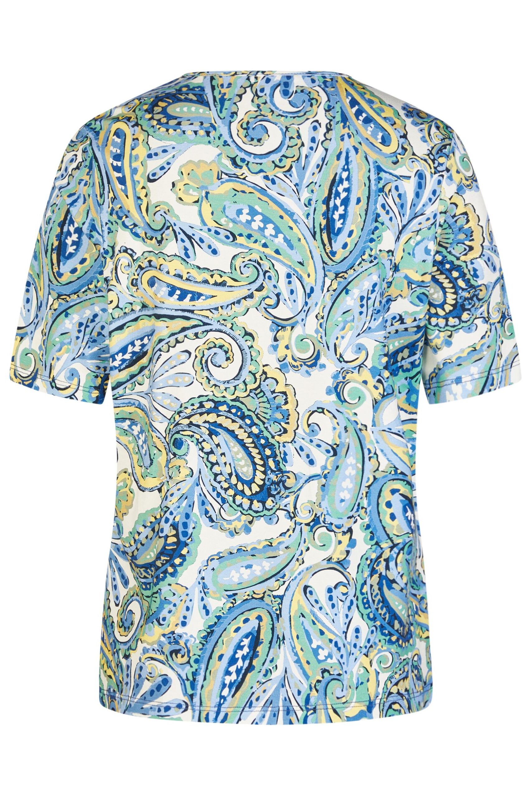 Stampa: paisley multicolor nei toni del blu, verde e giallo