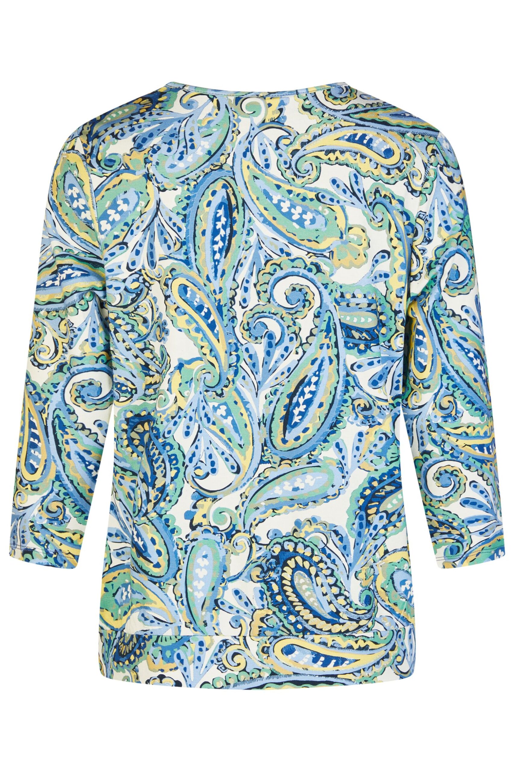 Stampa: paisley multicolor nei toni del blu, verde e giallo