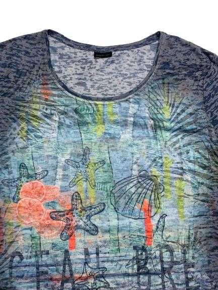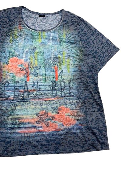 T-shirt donna Barbara Lebek in viscosa donna mezza manica girocollo tessuto degradè con stampa anteriore multicolor