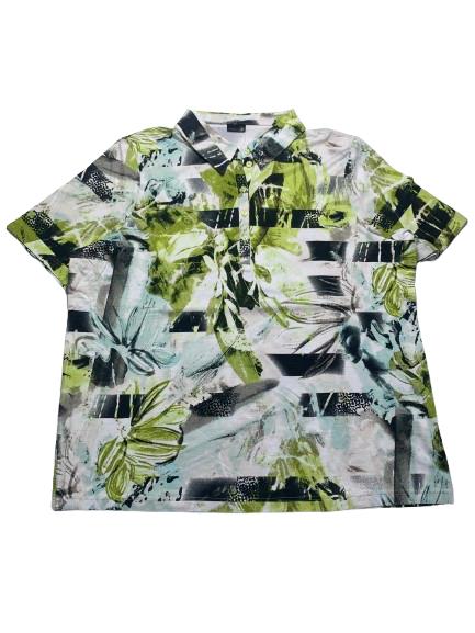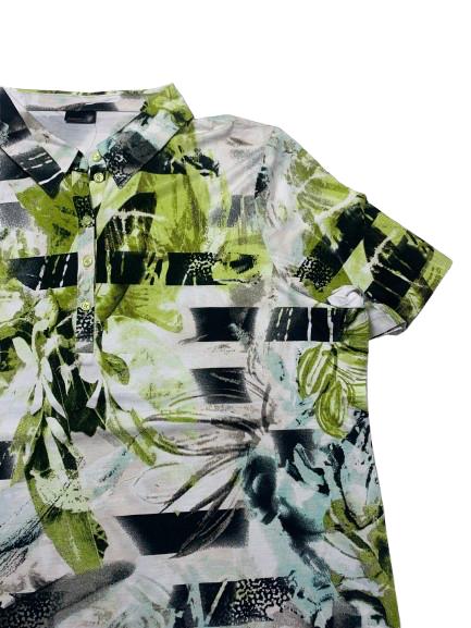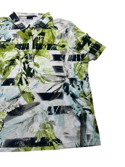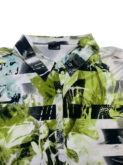 Polo donna Barbara Lebek in viscosa mezza manica con collo camicia 5 bottoni e stampa sui toni del verde