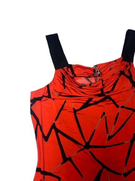 Abito donna Luisa Viola in viscosa stampa geometrica con spallina di 2,5 cm scollo a barca modello a giro