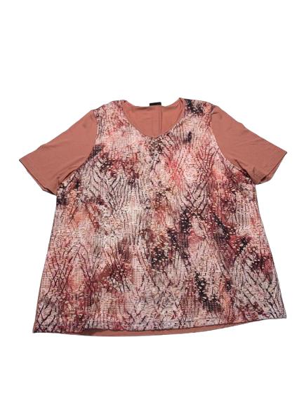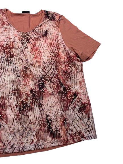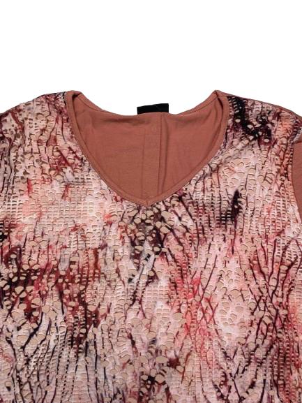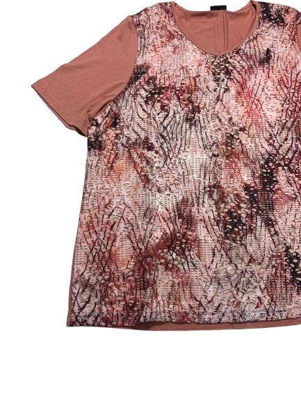 T-shirt Donna Barbara Lebek in viscosa mezza manica scollo a V finta abbottonatura sulla parte posteriore e applicazione di rete fantasia sulla parte anteriore con effetto vedo non vedo