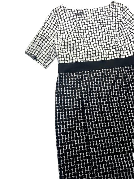 Abito donna Luisa Viola in cotone stretch con stampa geometrica a contrasto e taglio in vita e cernuera posteriore mezza manica scollo ampio