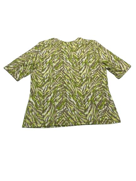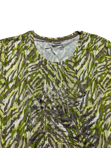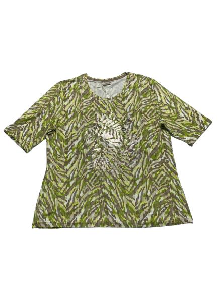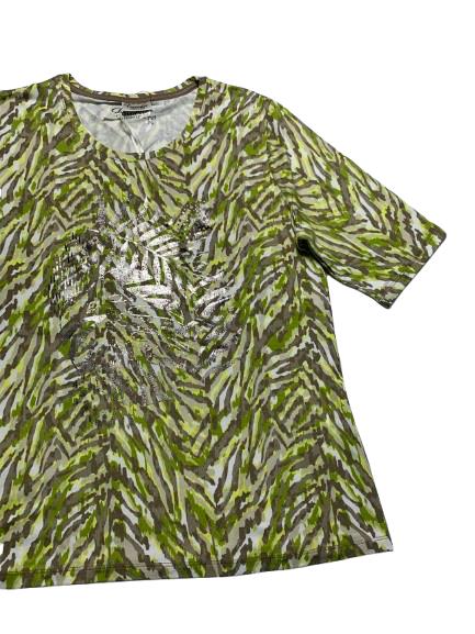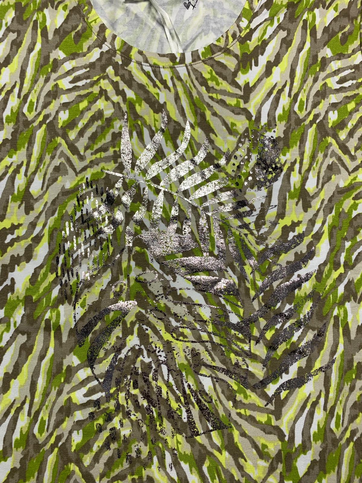 T-shirt donna Barbara Lebek in viscosa manica a gomito girocollo interamente fantasia sui toni del verde beige e bianco e con stampa lucida anteriore