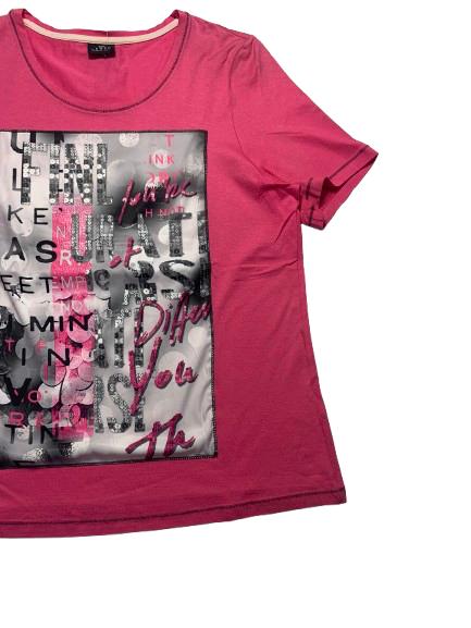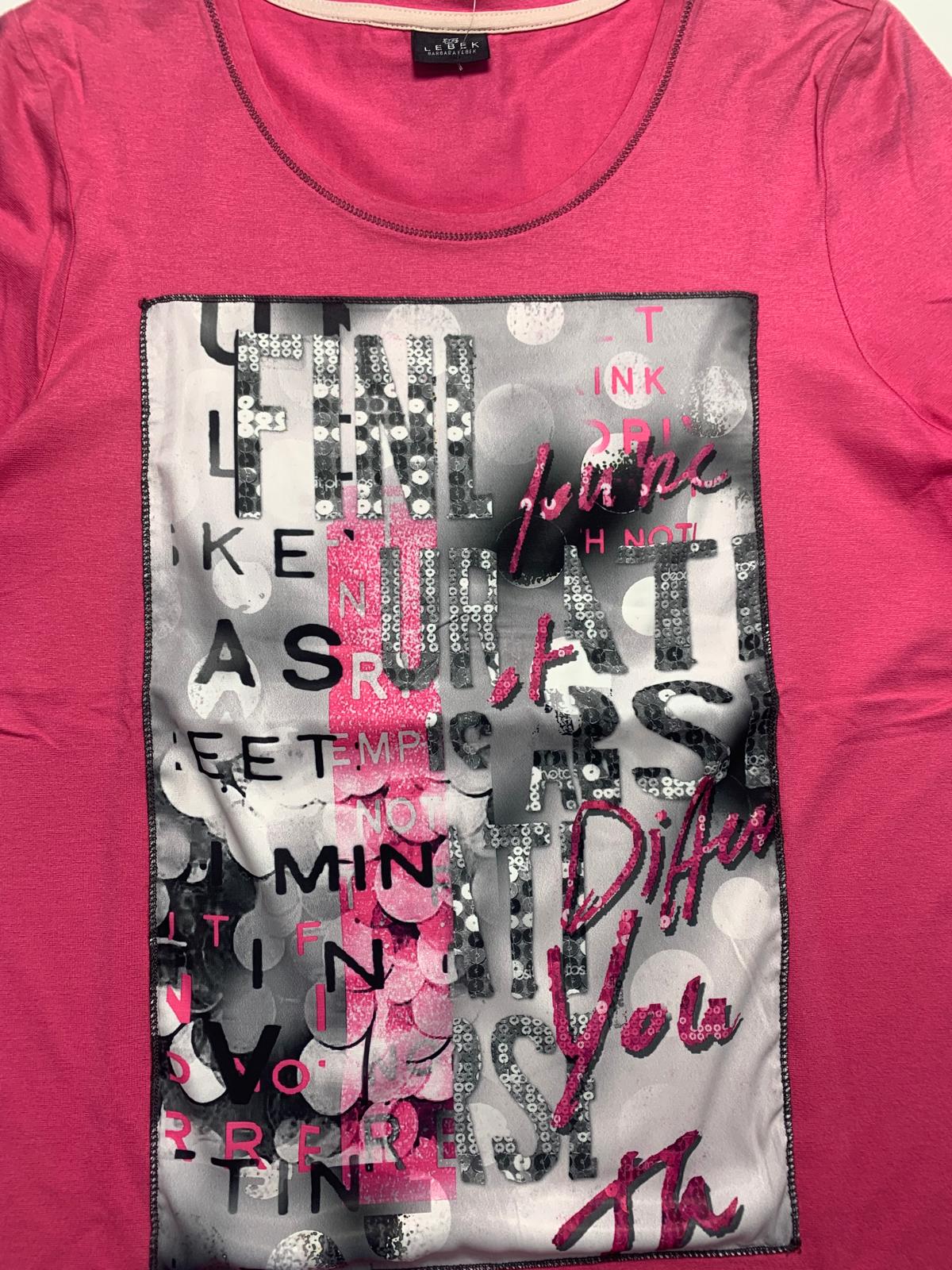 T-shirt donna Barbara Lebek in viscosa mezza manica girocollo con stampa su pannello anteriore e cuciture a contrasto