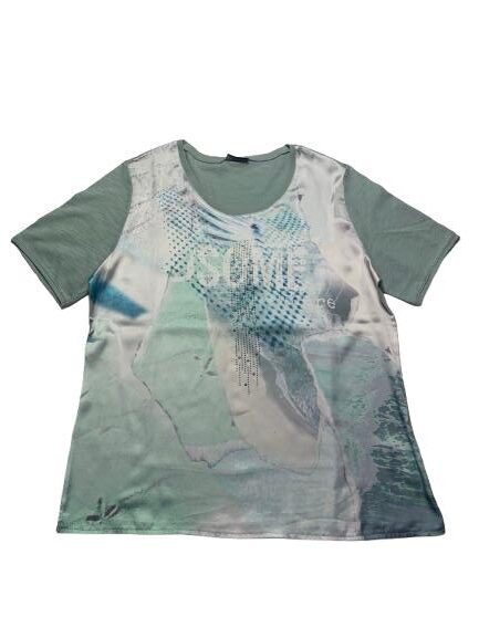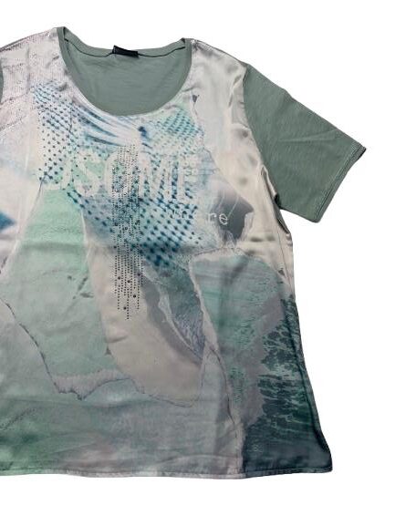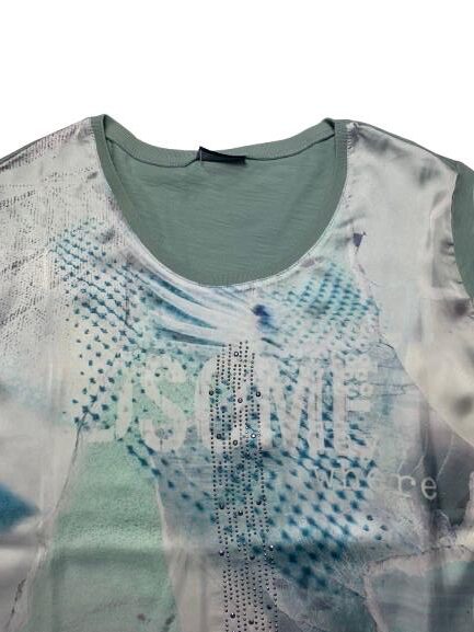 Blusa donna Barbara Lebek in viscosa mezza manica girocollo con pannello anteriore in raso con applicazione di borchie/strass