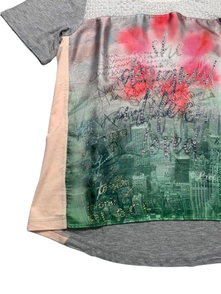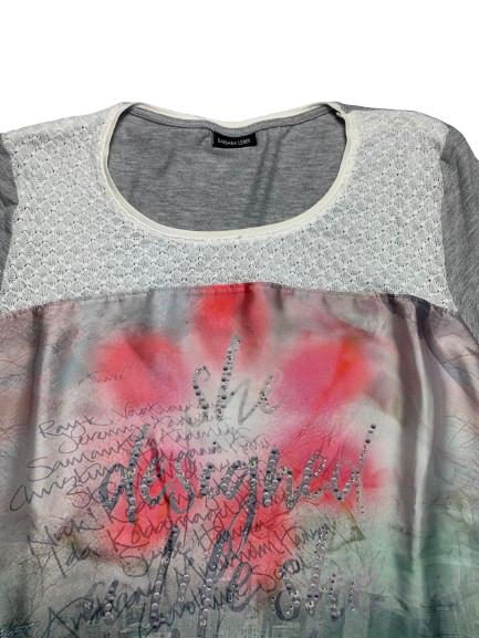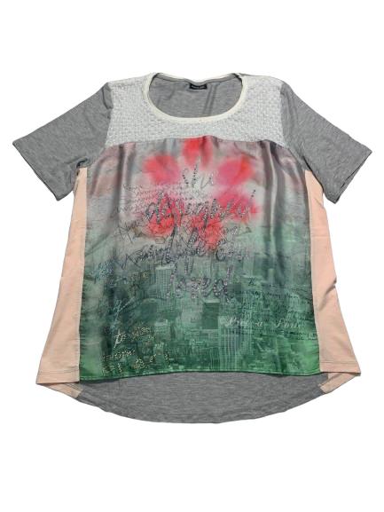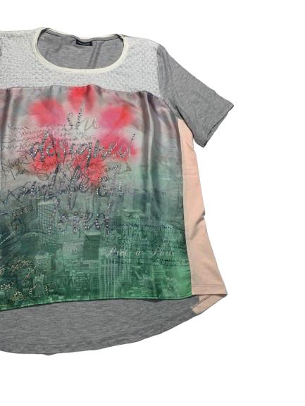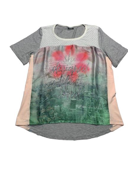 T-shirt donna Barbara Lebek in viscosa mezza manica con pannello anteriore fantasia girocollo fasce laterali tinta unita e leggermente piu’ lunga dietro