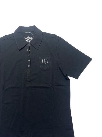 Polo donna Barbara Lebek in cotone mezza manica con collo camicia e ciappe con taschino e borchie altezza cuore