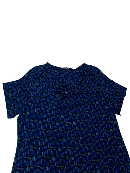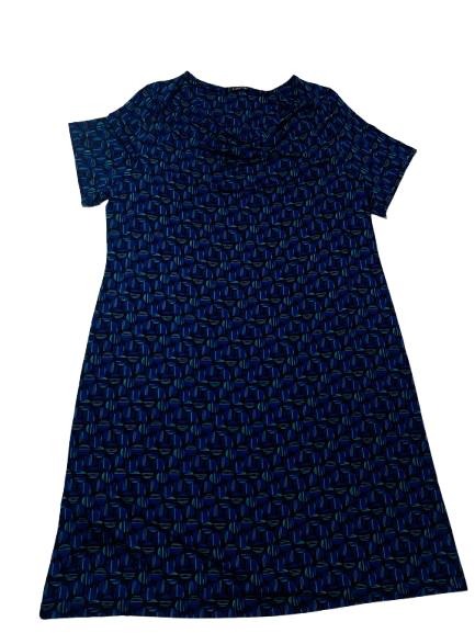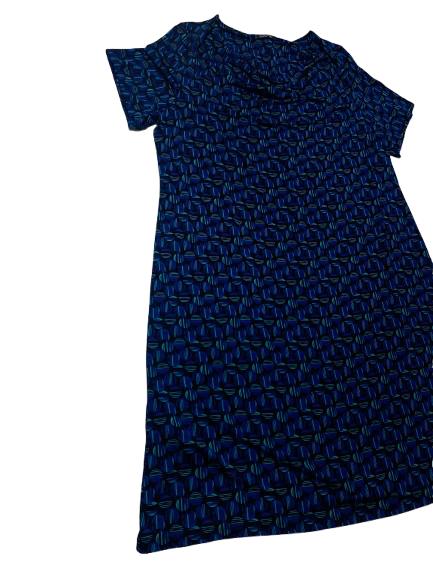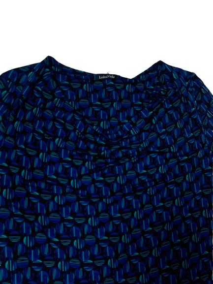 Abito donna Luisa Viola in viscosa mezza manica interamente fantasia sui toni del blu e azzurro collo a balza linea dritta lunga