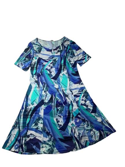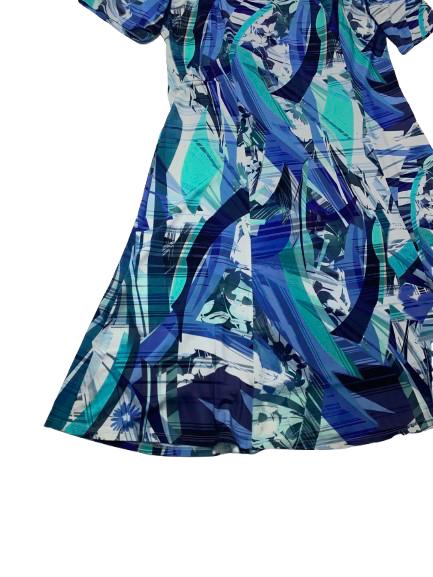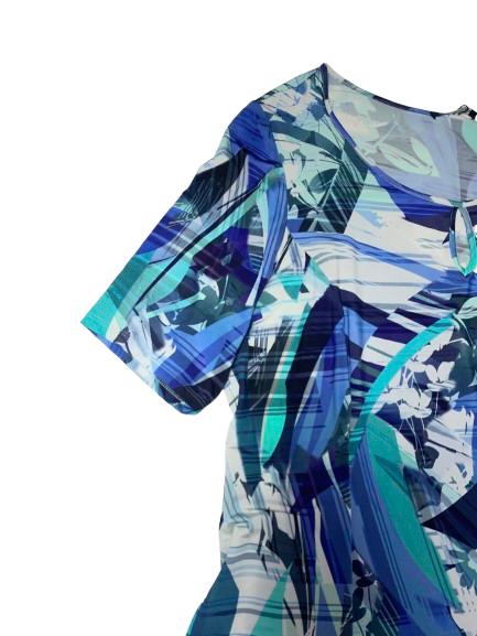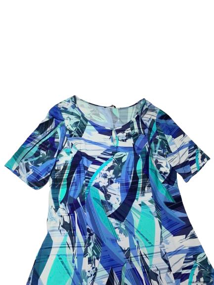 Abito donna Luisa Viola in viscosa fantasia sui toni del blu mezza manica leggermente svasato con goccia sullo scollo ampio