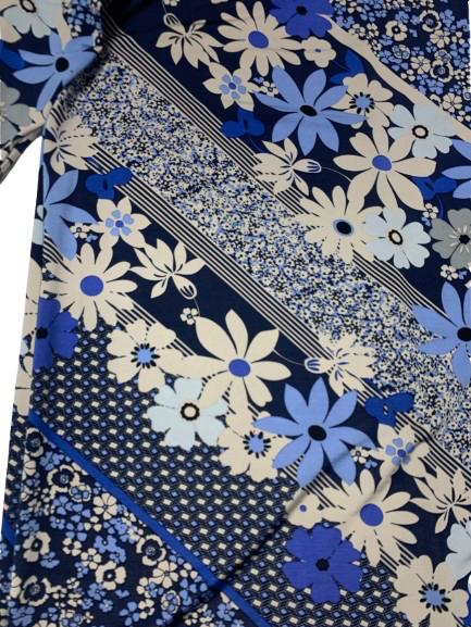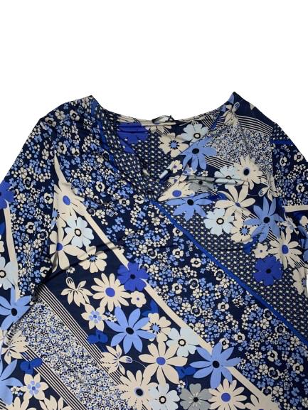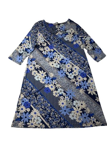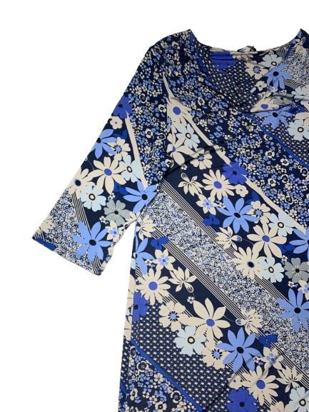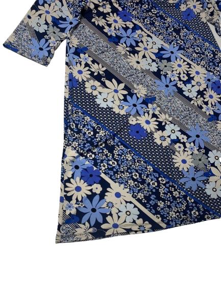 Abito donna Luisa Viola in viscosa manica a 3/4 con con collo a balza linea leggermente svasata interamente stampato sui toni del beige blu e azzurro