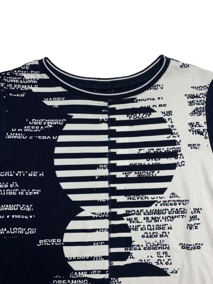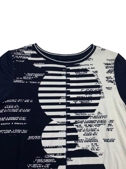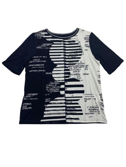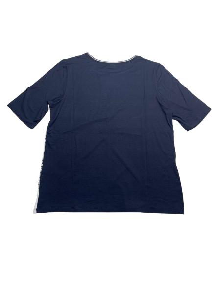 T-shirt donna Barbara Lebek in viscosa manica a gomito scollo a barca con stampa in bianco e blu anteriore