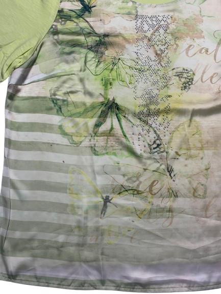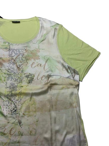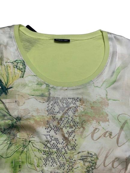 T-shirt donna Barbara Lebek in viscosa e poliestere con pannello anteriore effetto raso con strass girocollo ampio