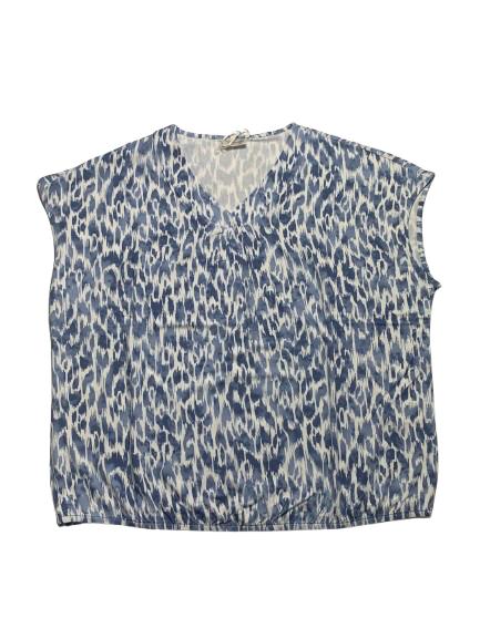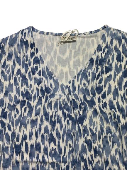T-shirt donna Barbara Lebek manica scesa in viscosa scollo a V con aggrappatura sullo scollo fantasia animalier con elastico sul fondo