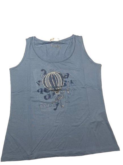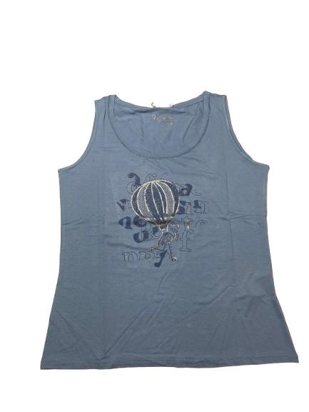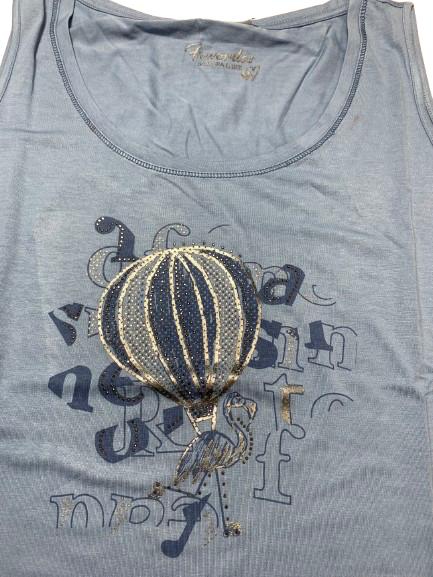 Canotta donna Barbara Lebek in viscosa giromanica spalla larga con stampa mongolfiera te applicazione strass metallici