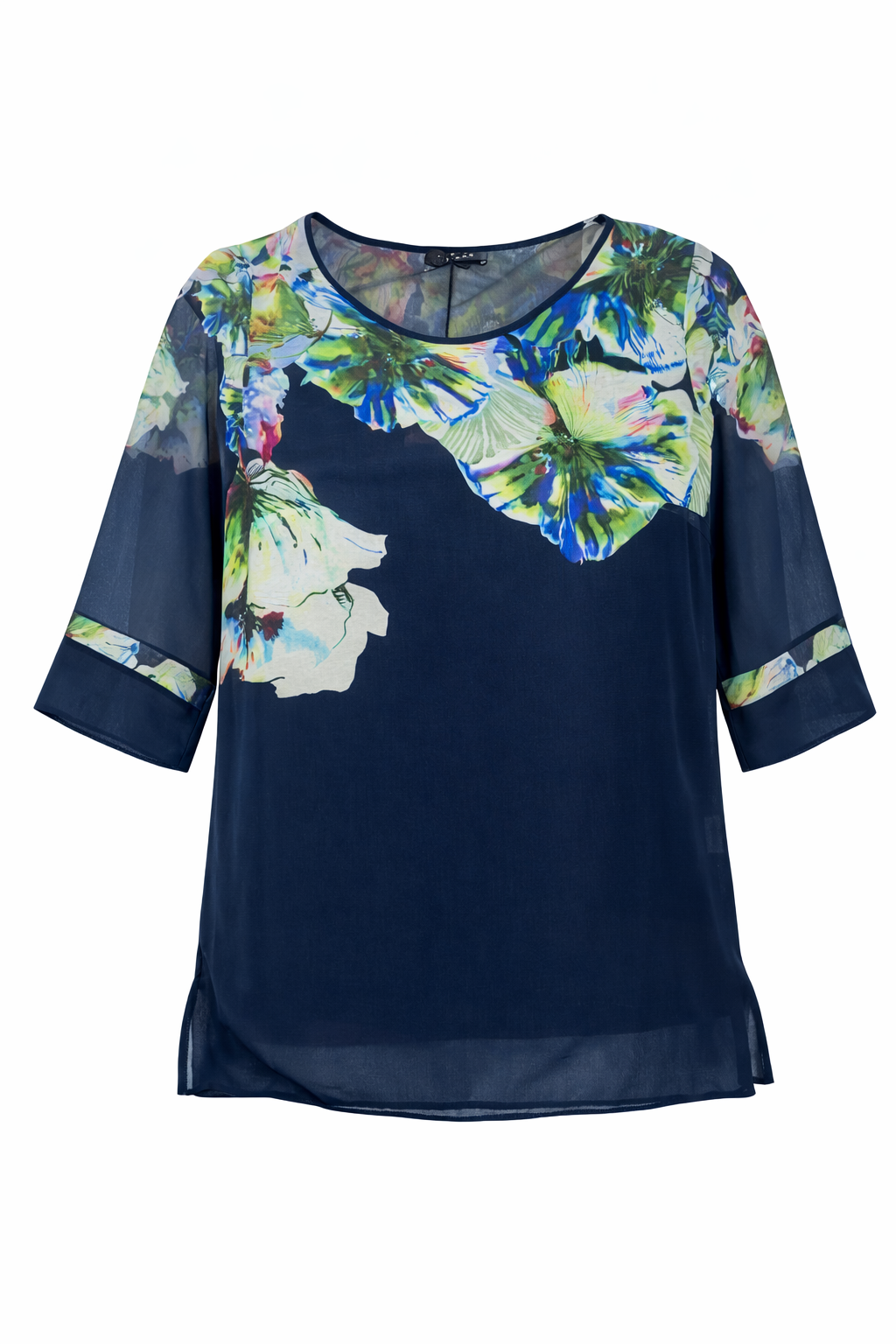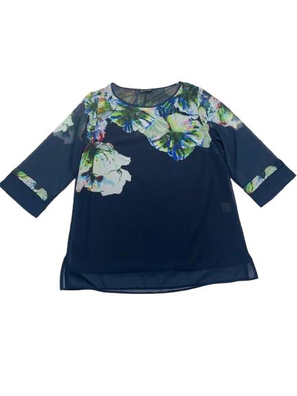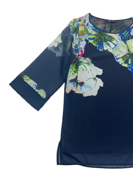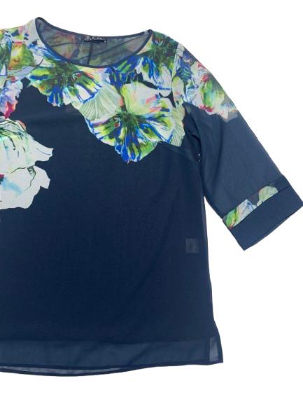 Casacca Donna Curvy Mariarosaria B. – Blusa Elegante in Georgette Blu con Stampa Floreale