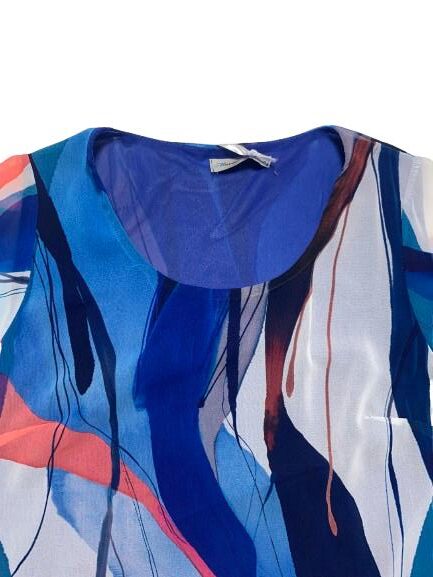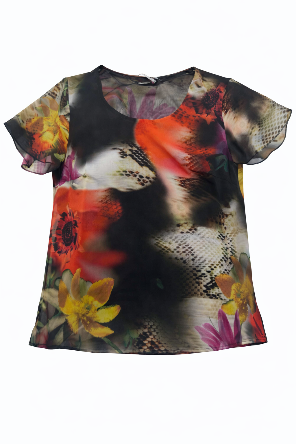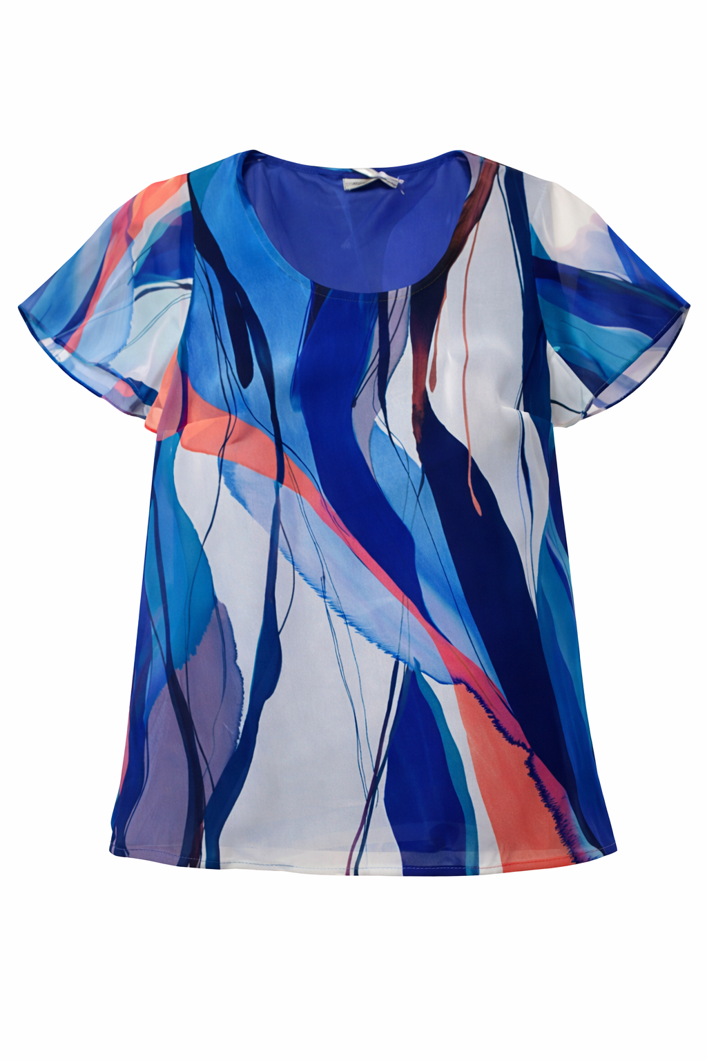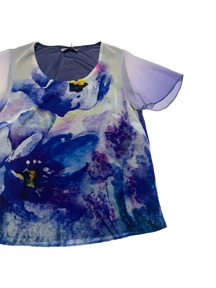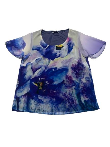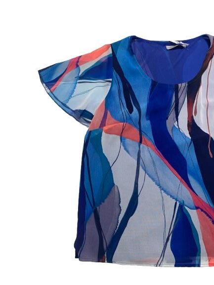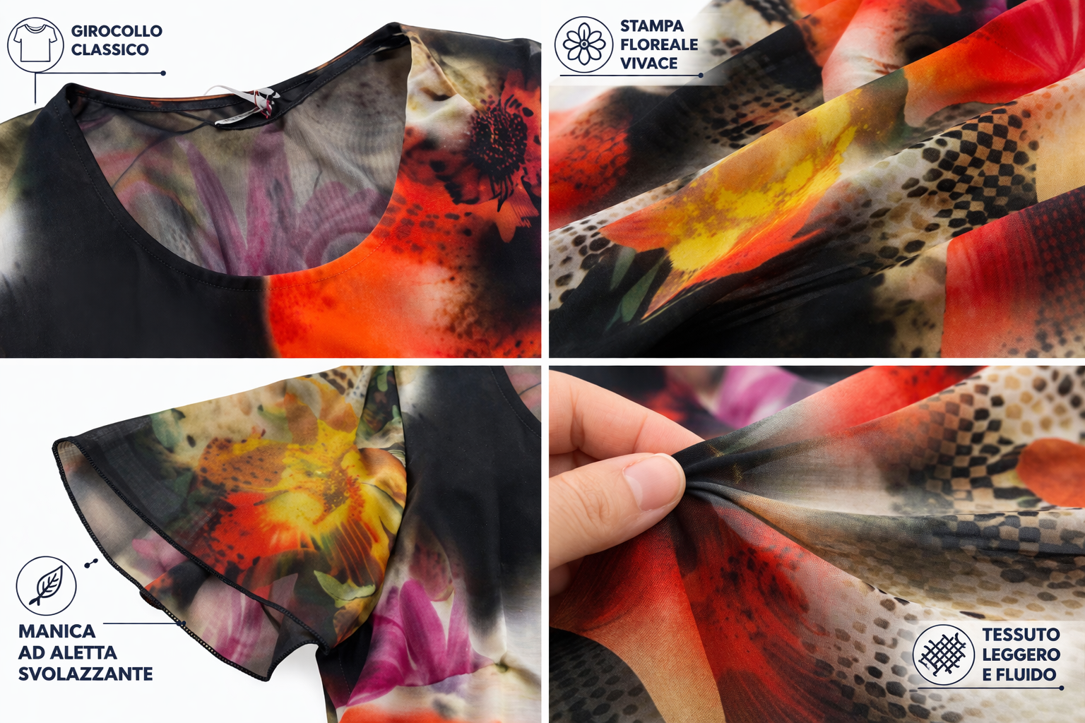 Blusa donna Mariarosaria B. mezza manica in georgette foderato fantasia manica ad aletta linea morbida girocollo