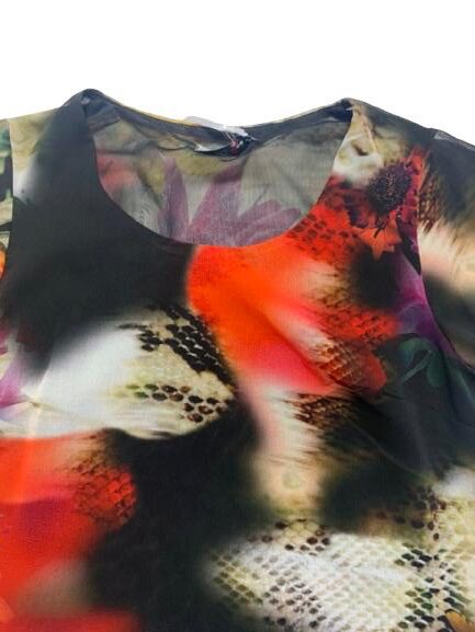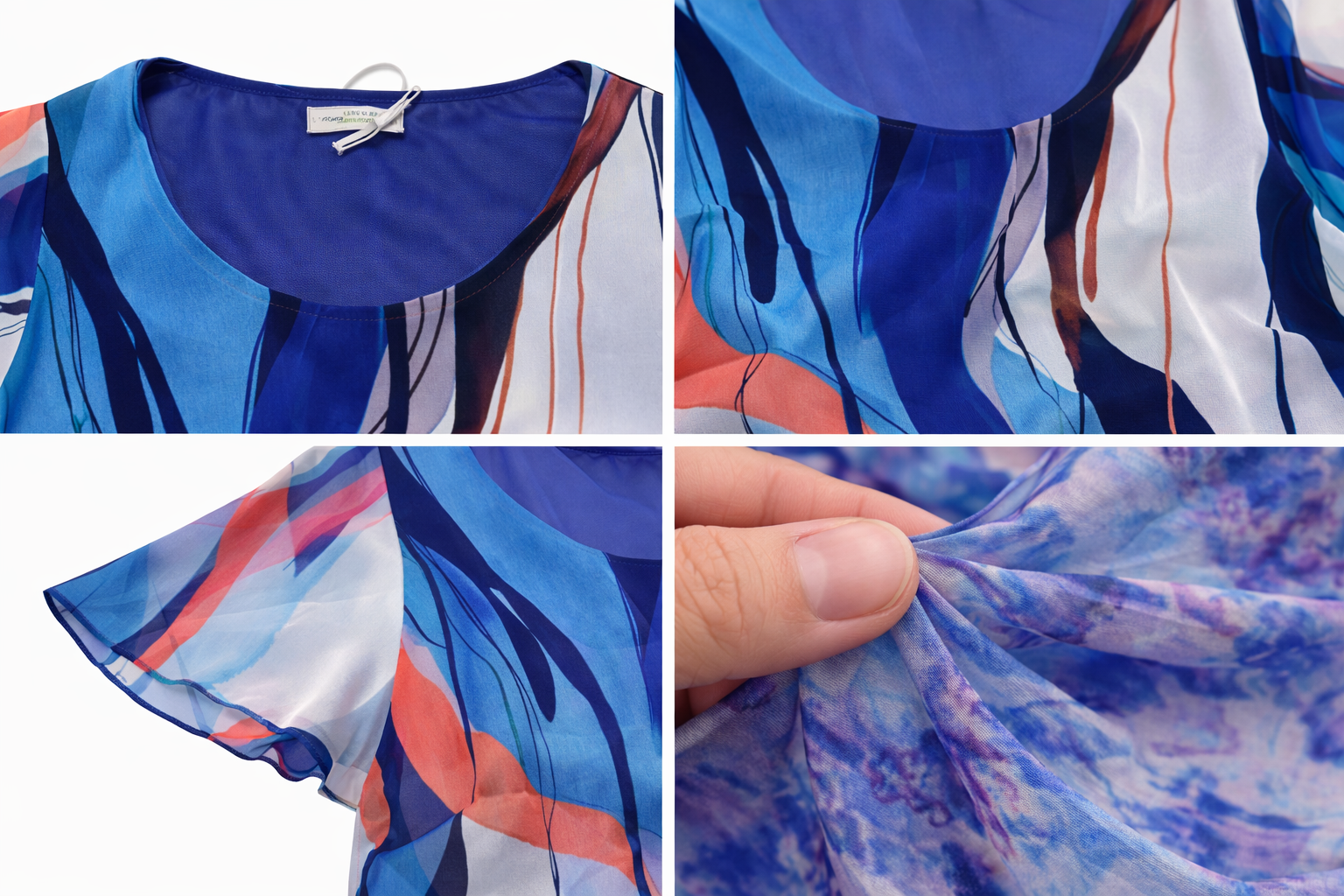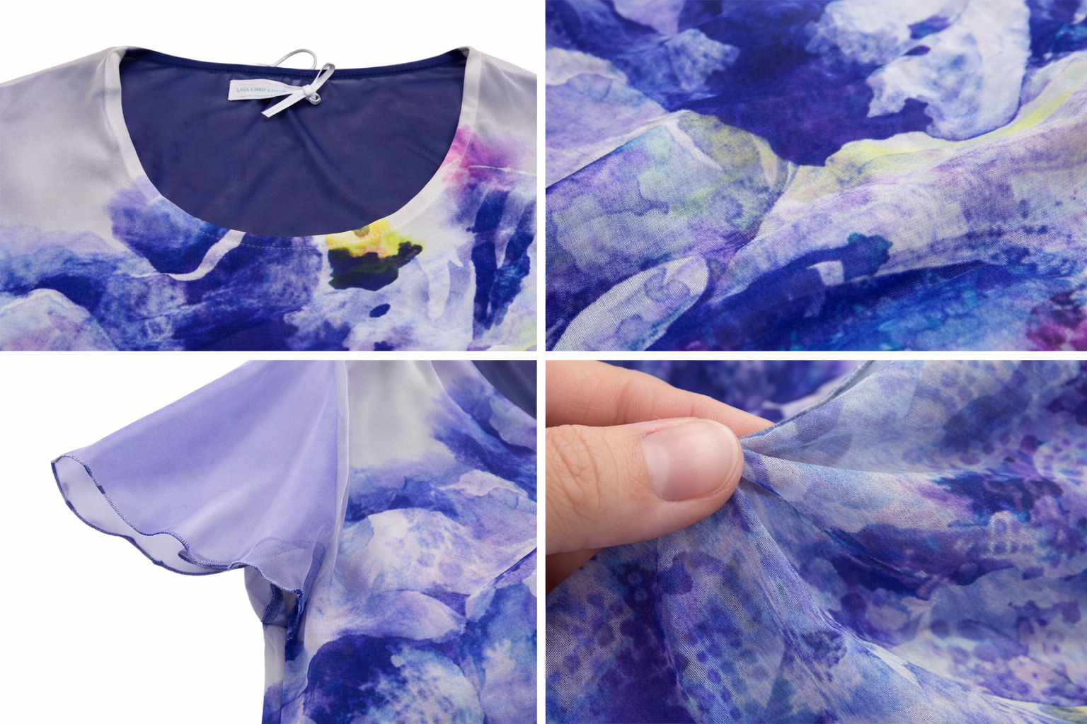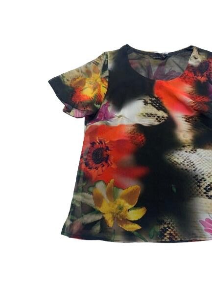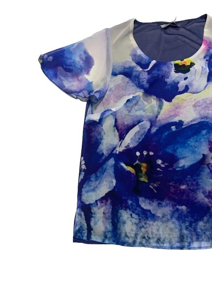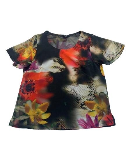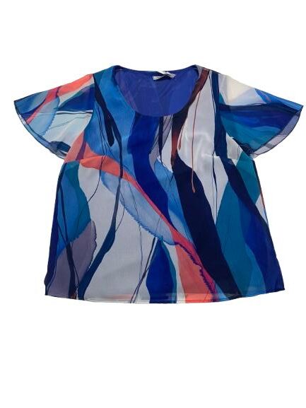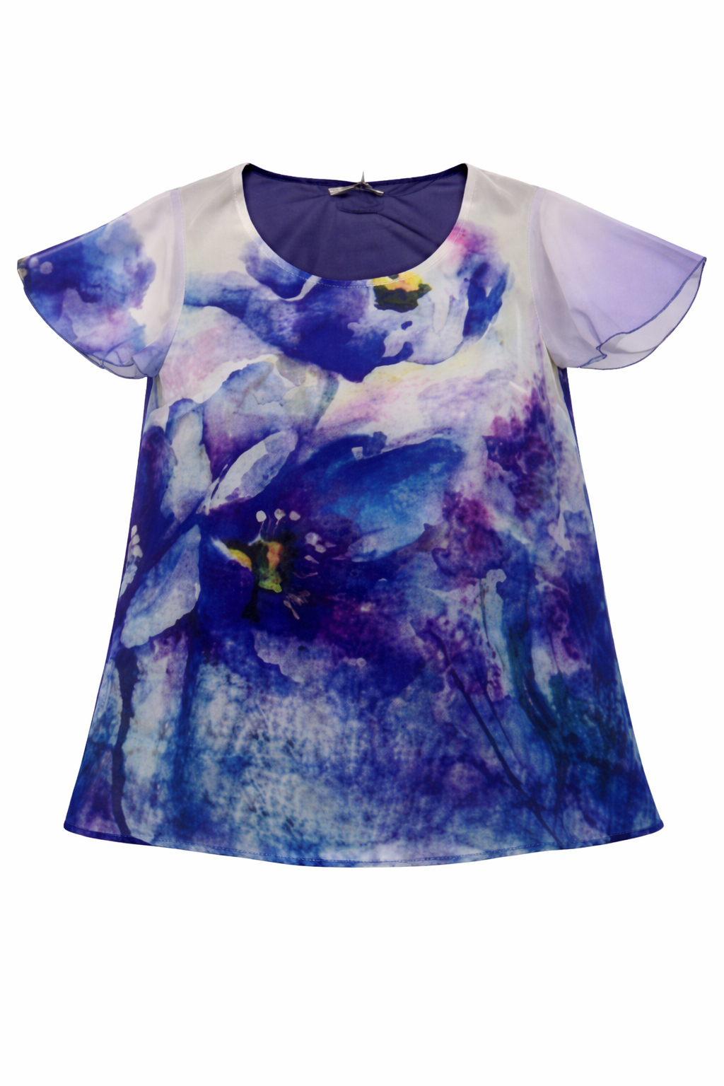 Blusa donna Mariarosaria B. mezza manica in georgette foderato fantasia manica ad aletta linea morbida girocollo