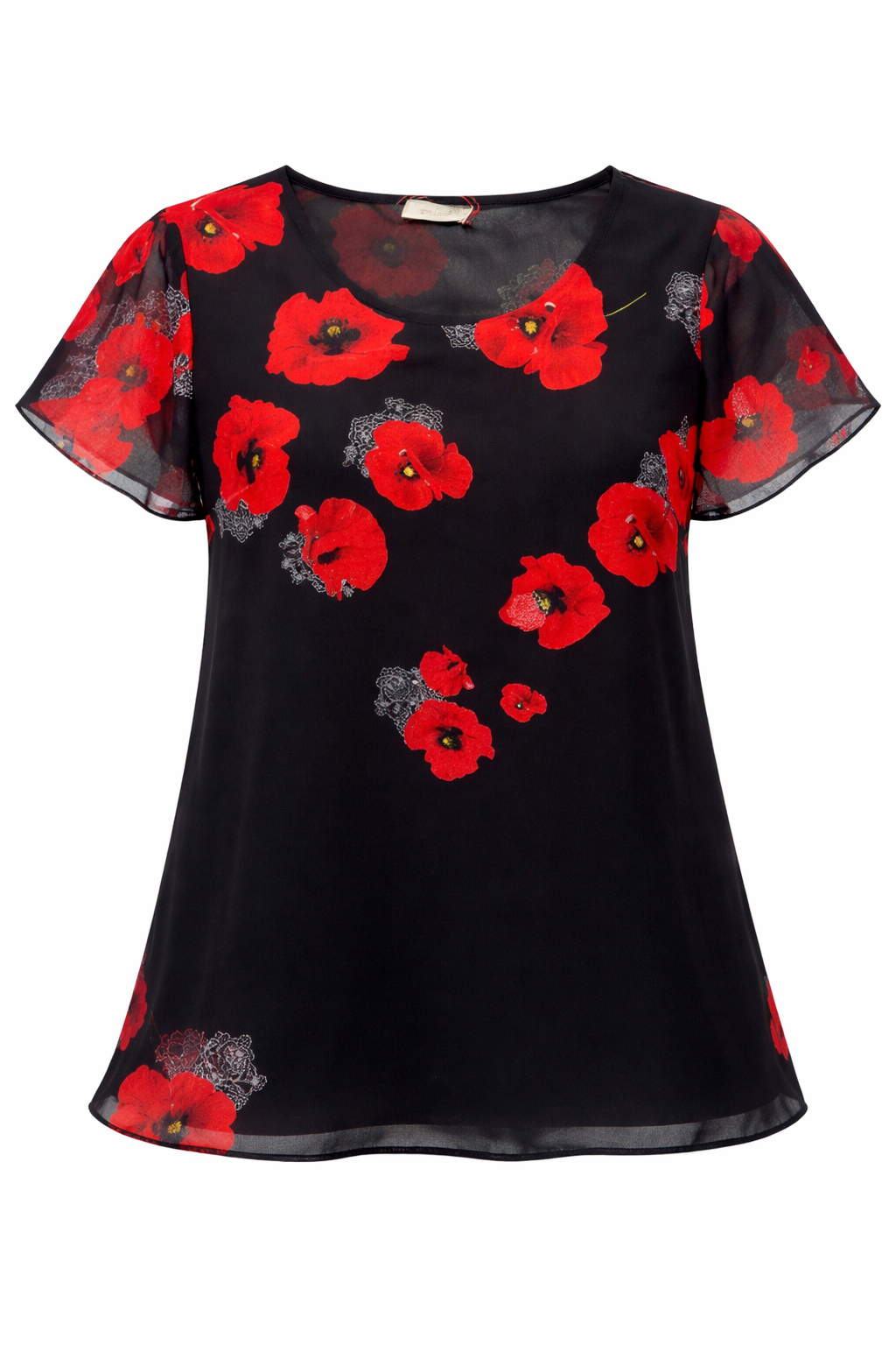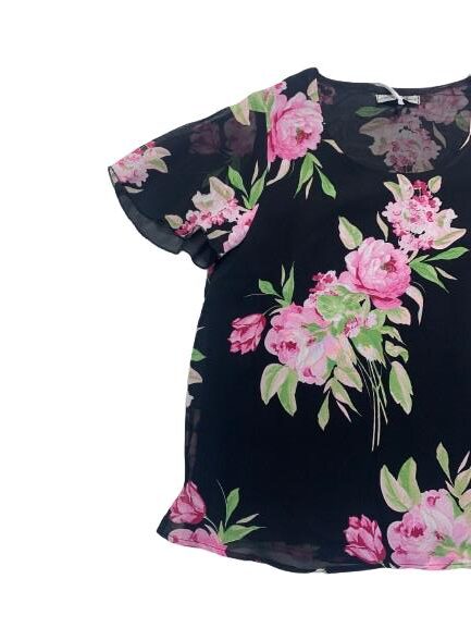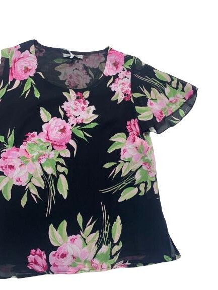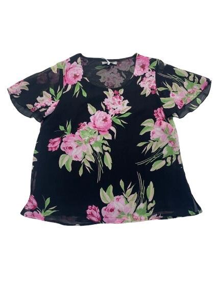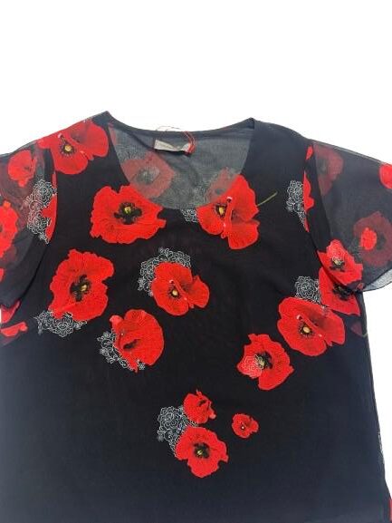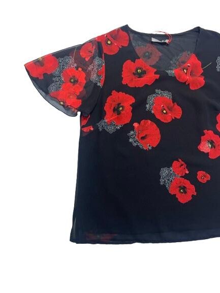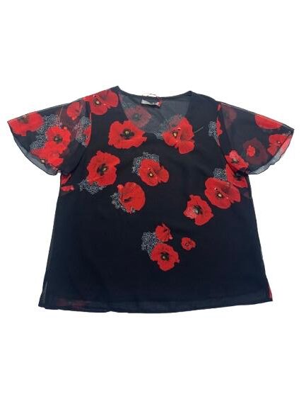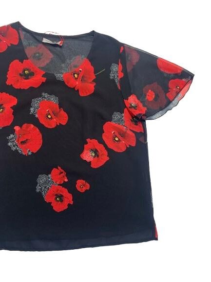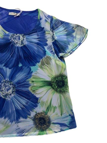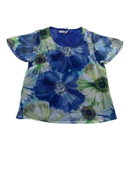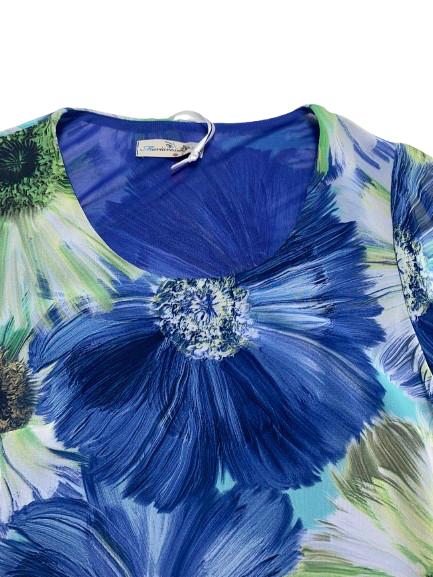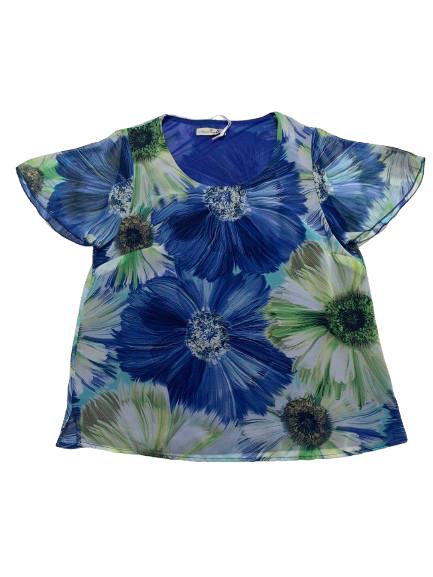 Blusa donna Mariarosaria B. mezza manica in georgette foderato fantasia manica ad aletta linea morbida girocollo