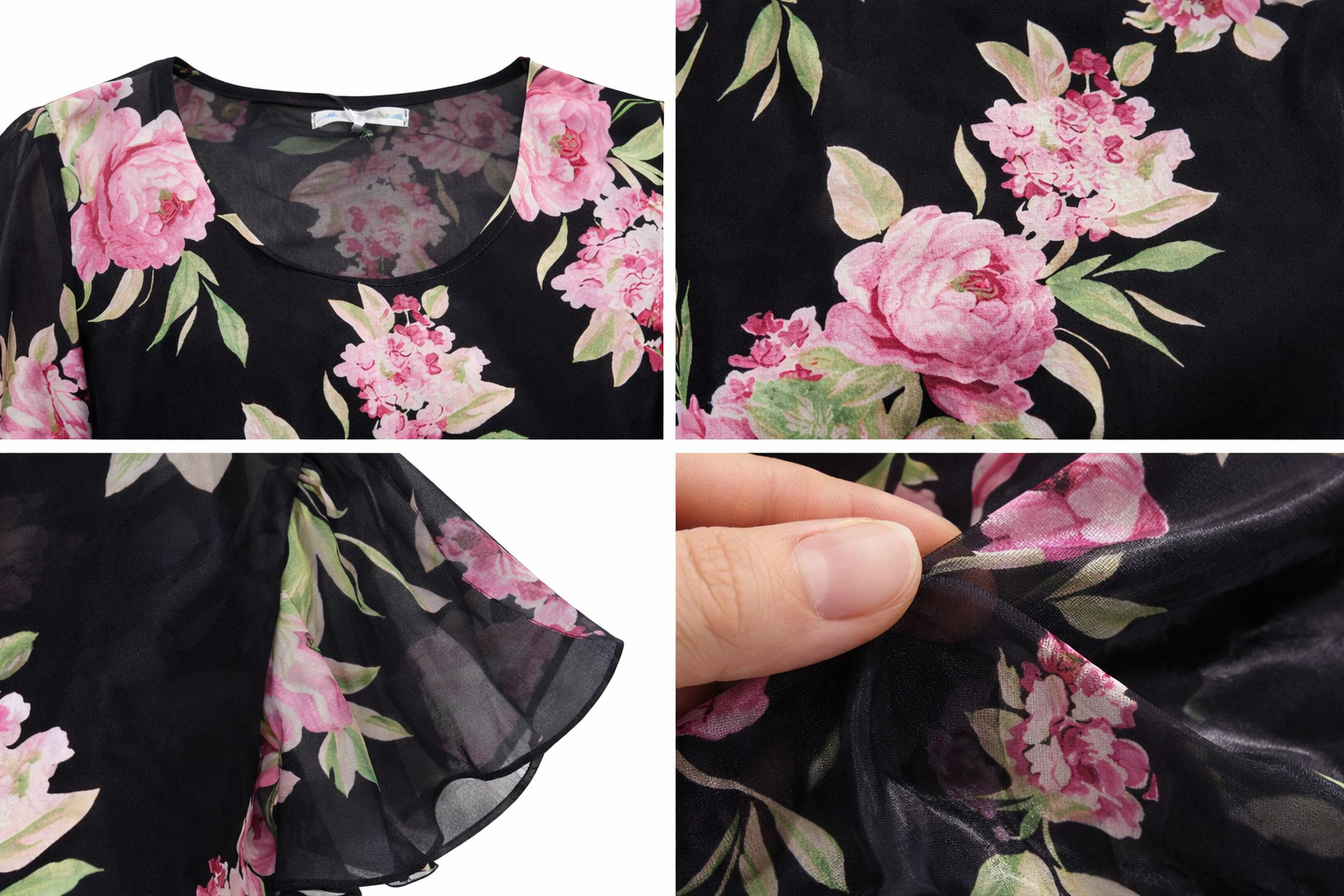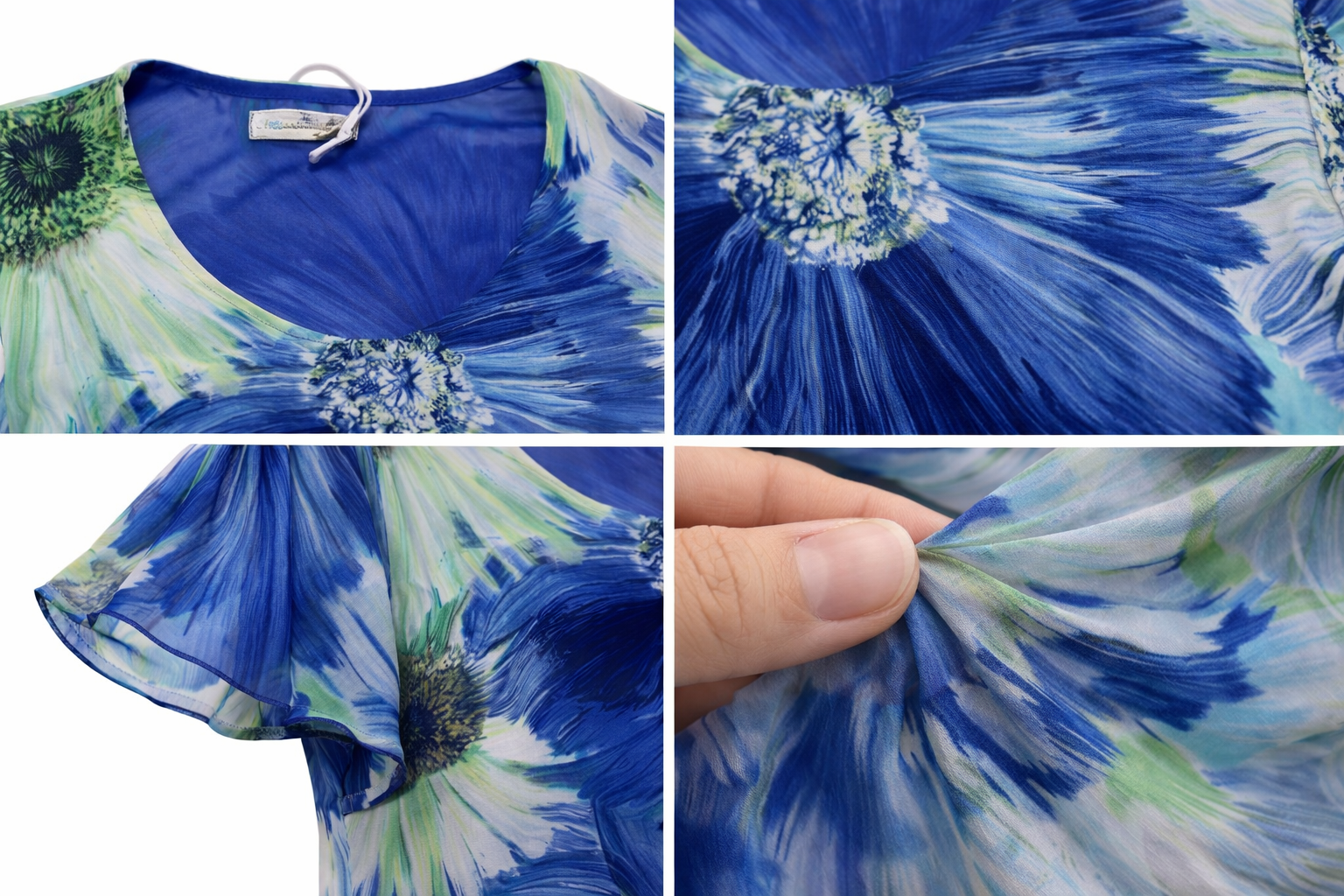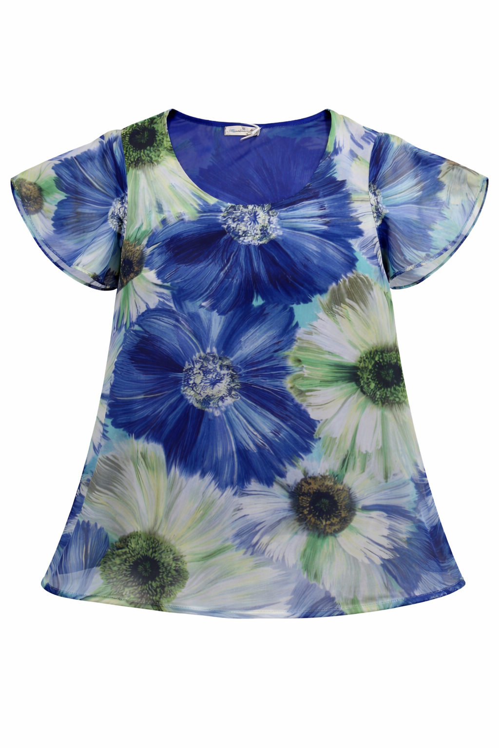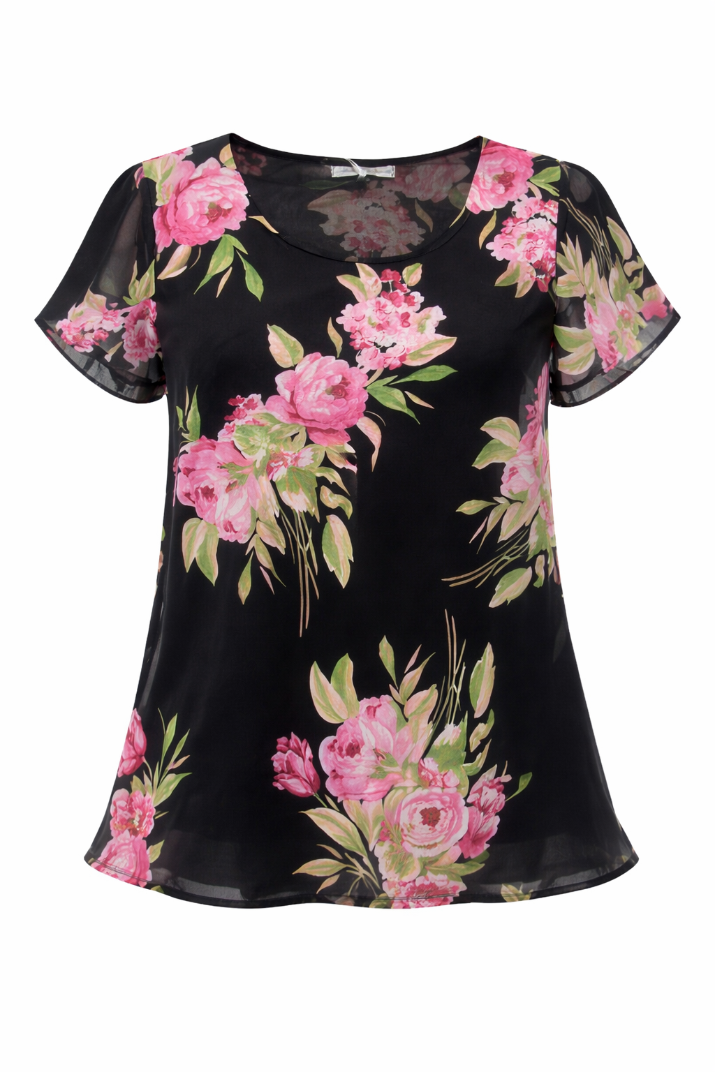 Blusa donna Mariarosaria B. mezza manica in georgette foderato fantasia manica ad aletta linea morbida girocollo