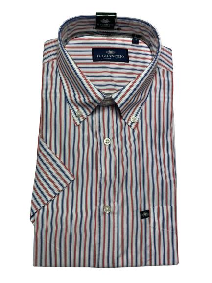Camicia uomo Il Granchio mezza manica in cotone collo Button-Down con taschino e logo altezza cuore