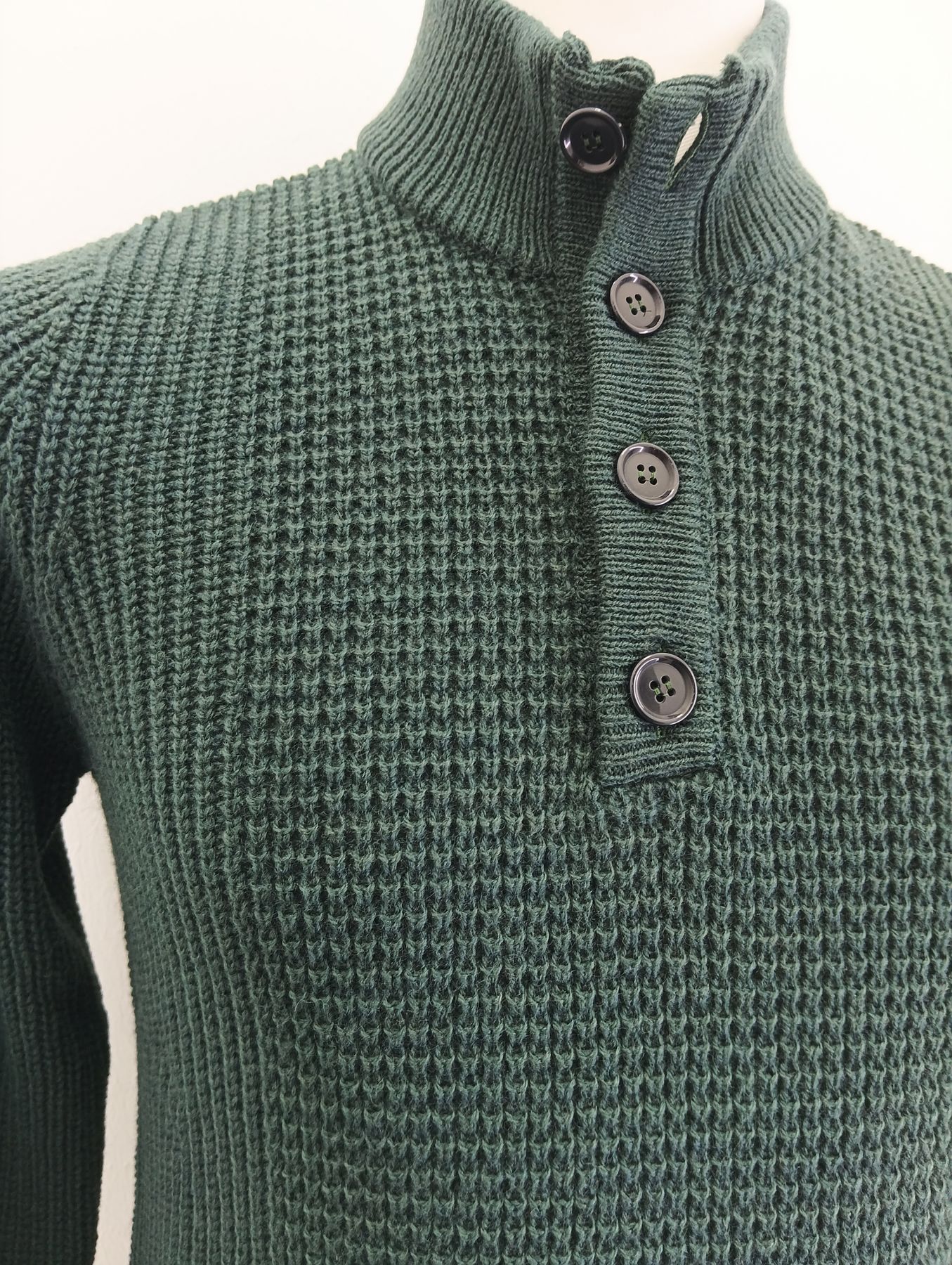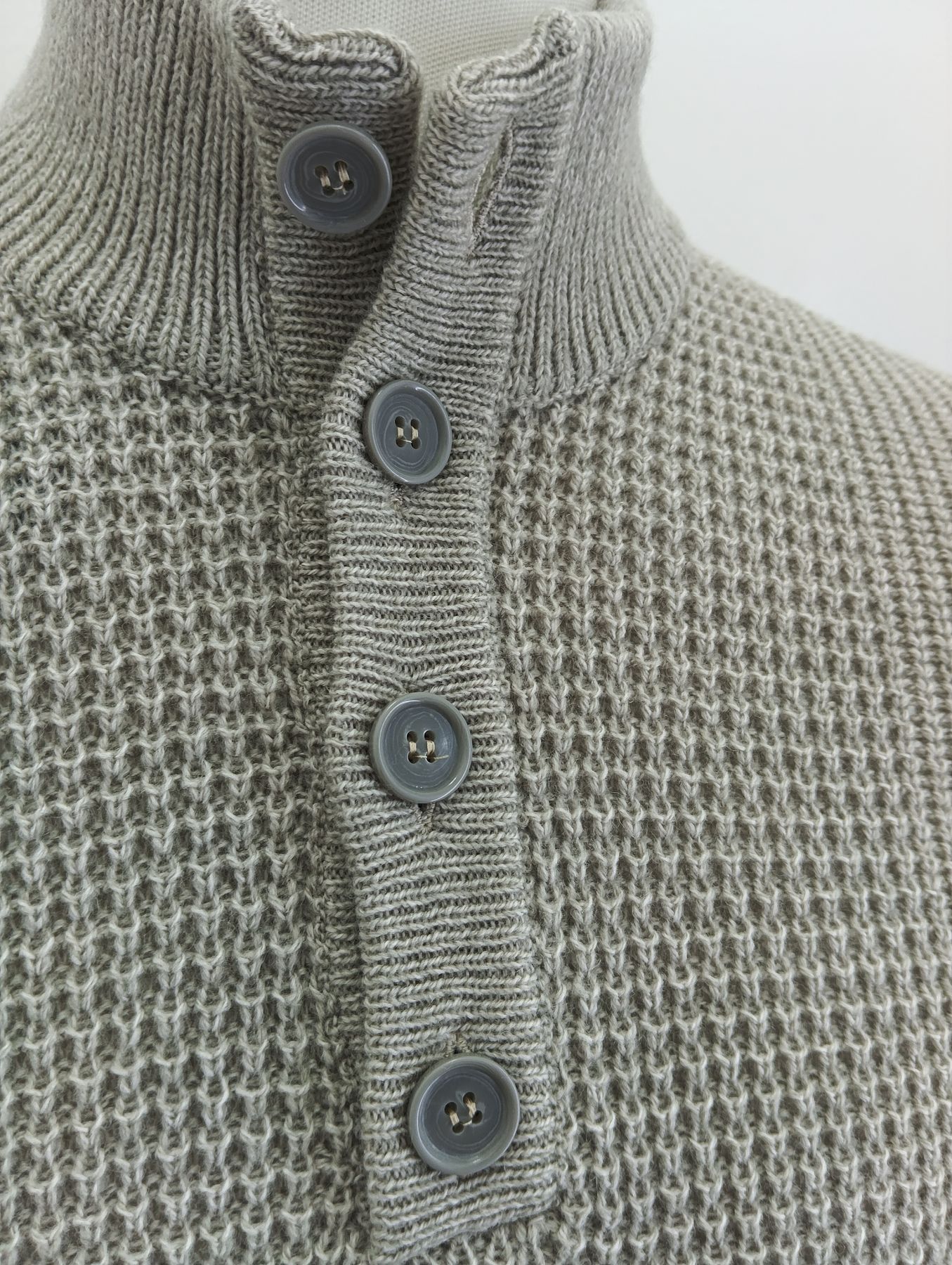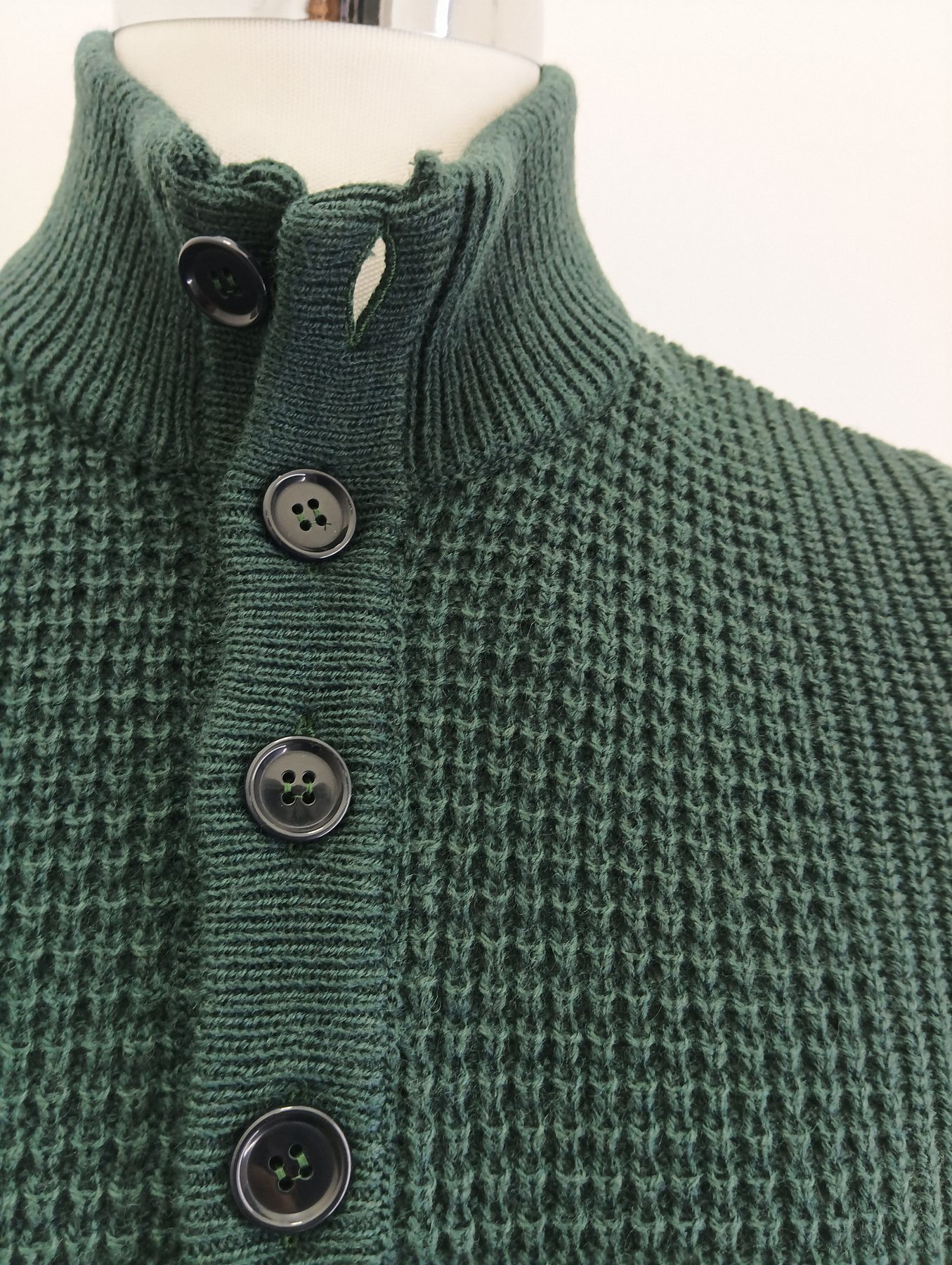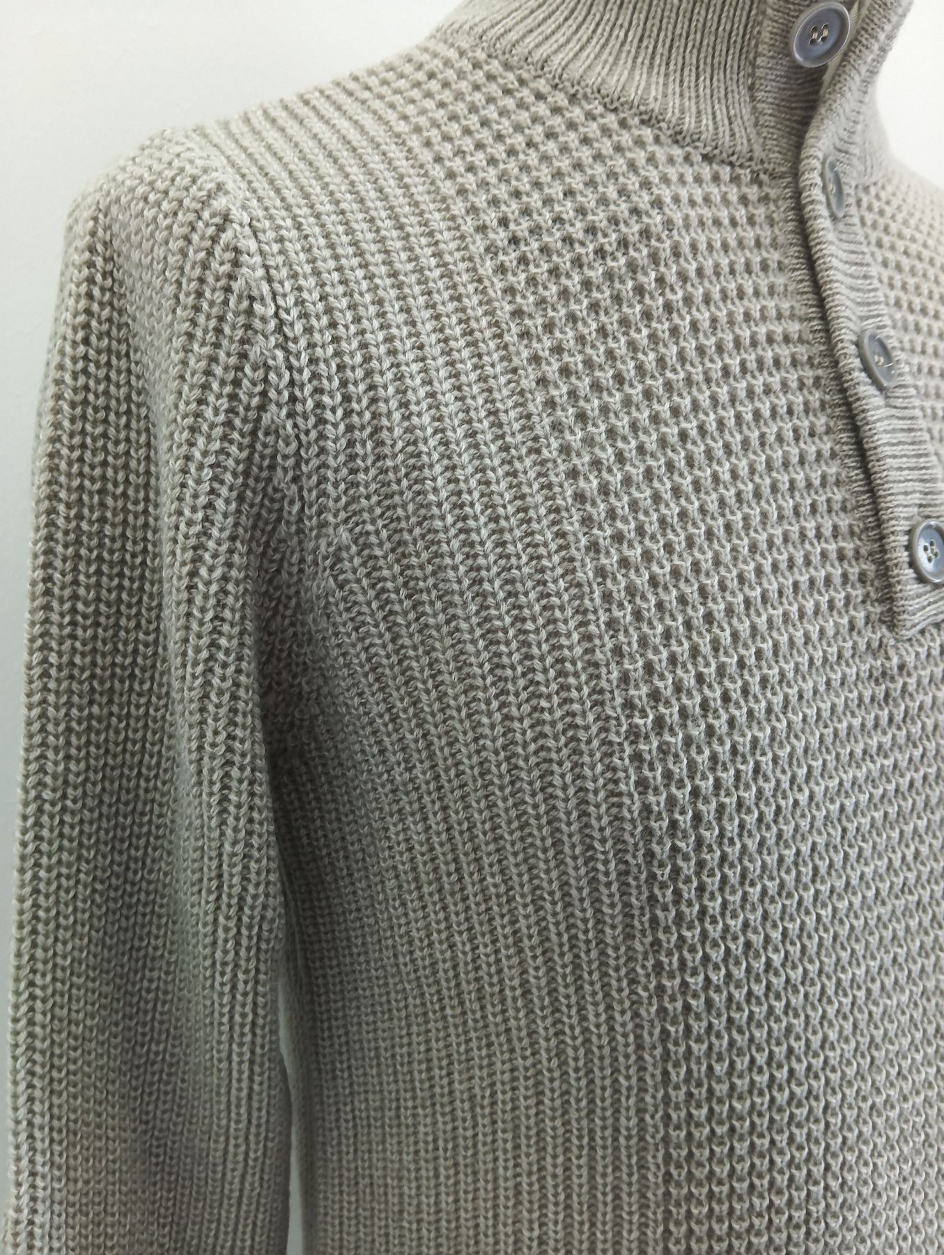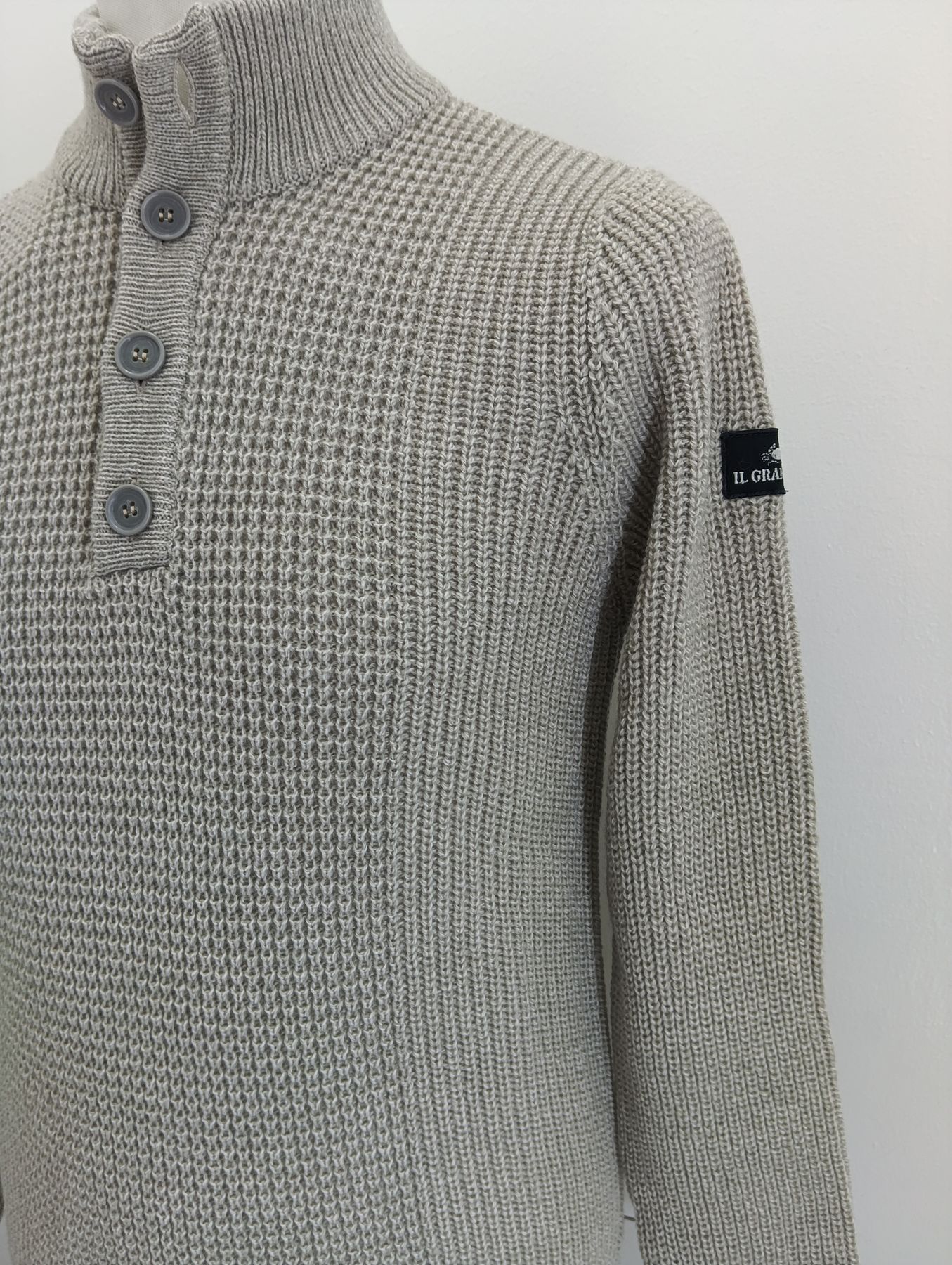 Maglione uomo collo lupetto con bottoni in filato doppiato a coste larghe e logo