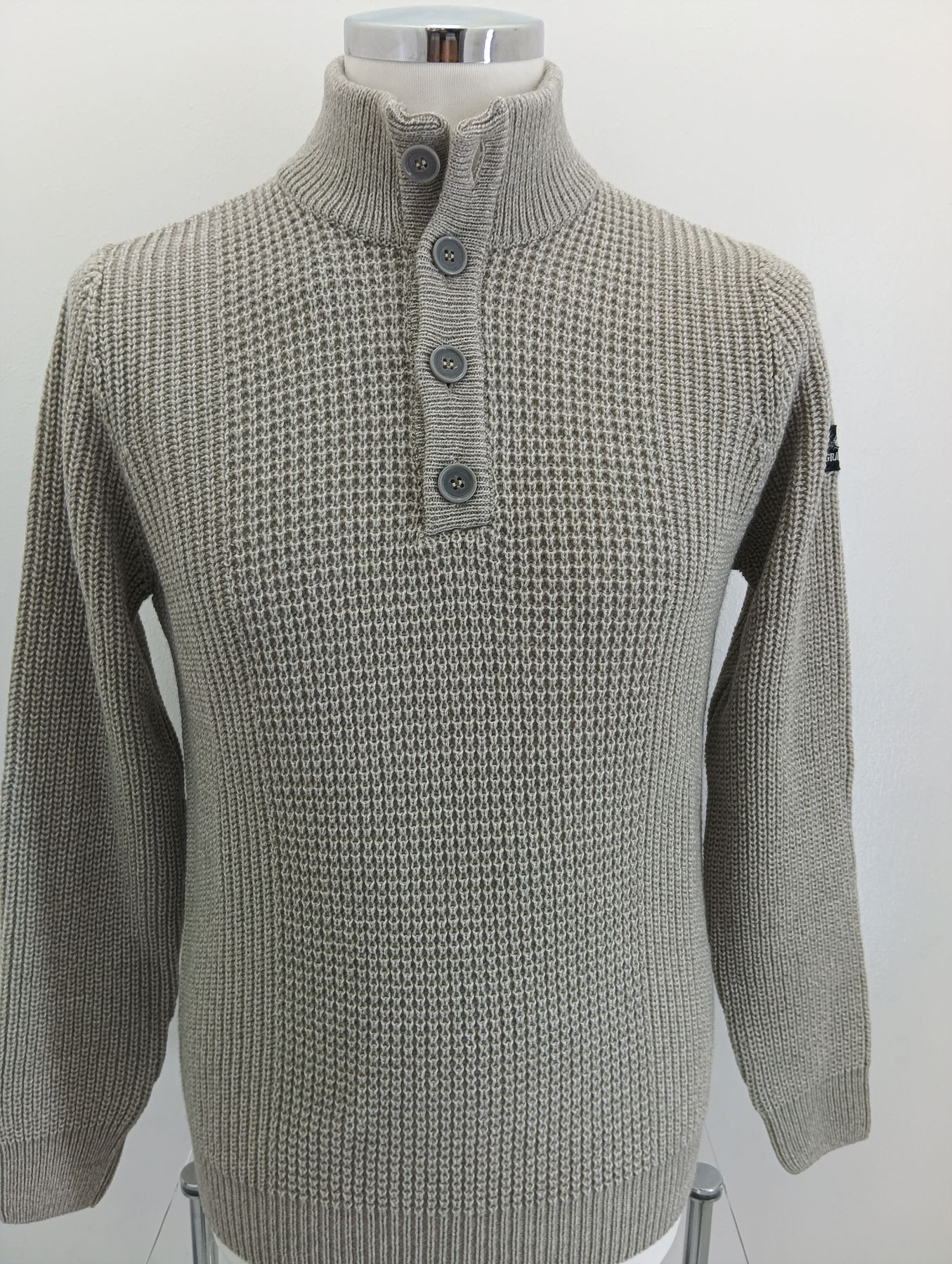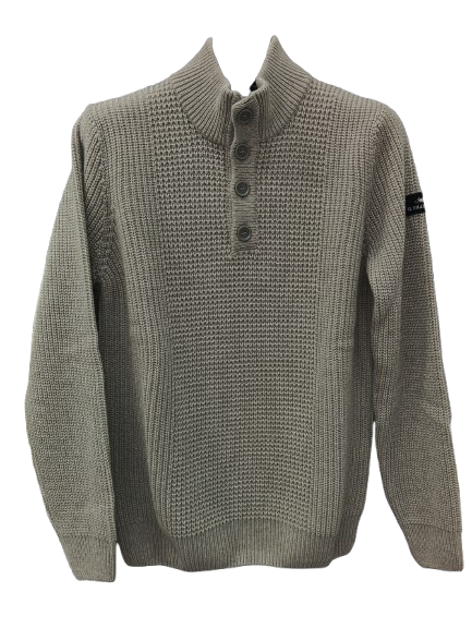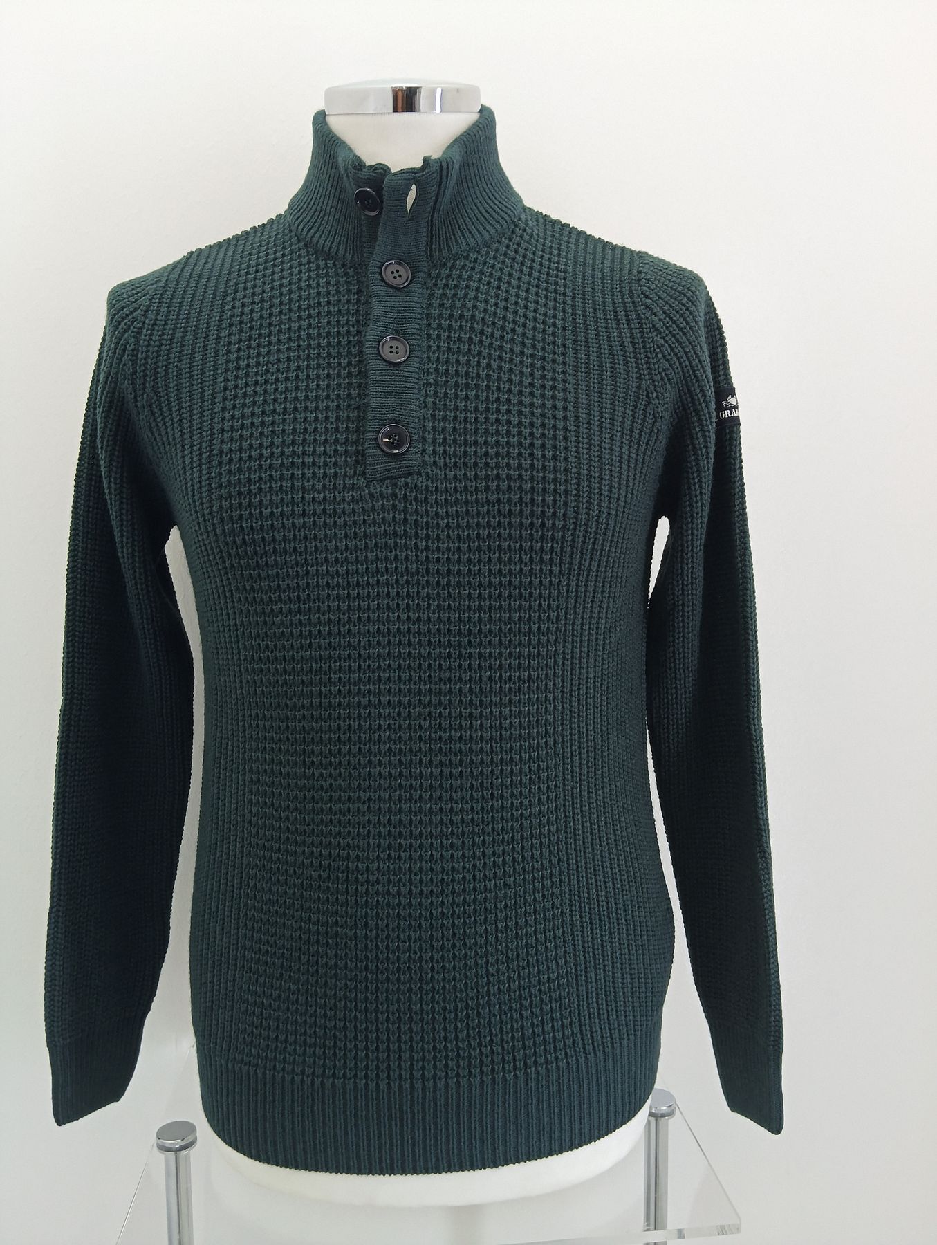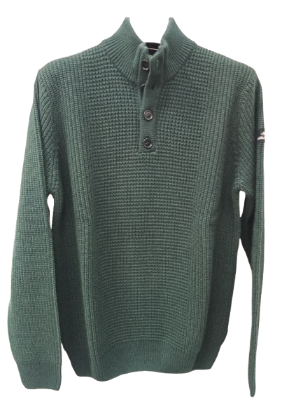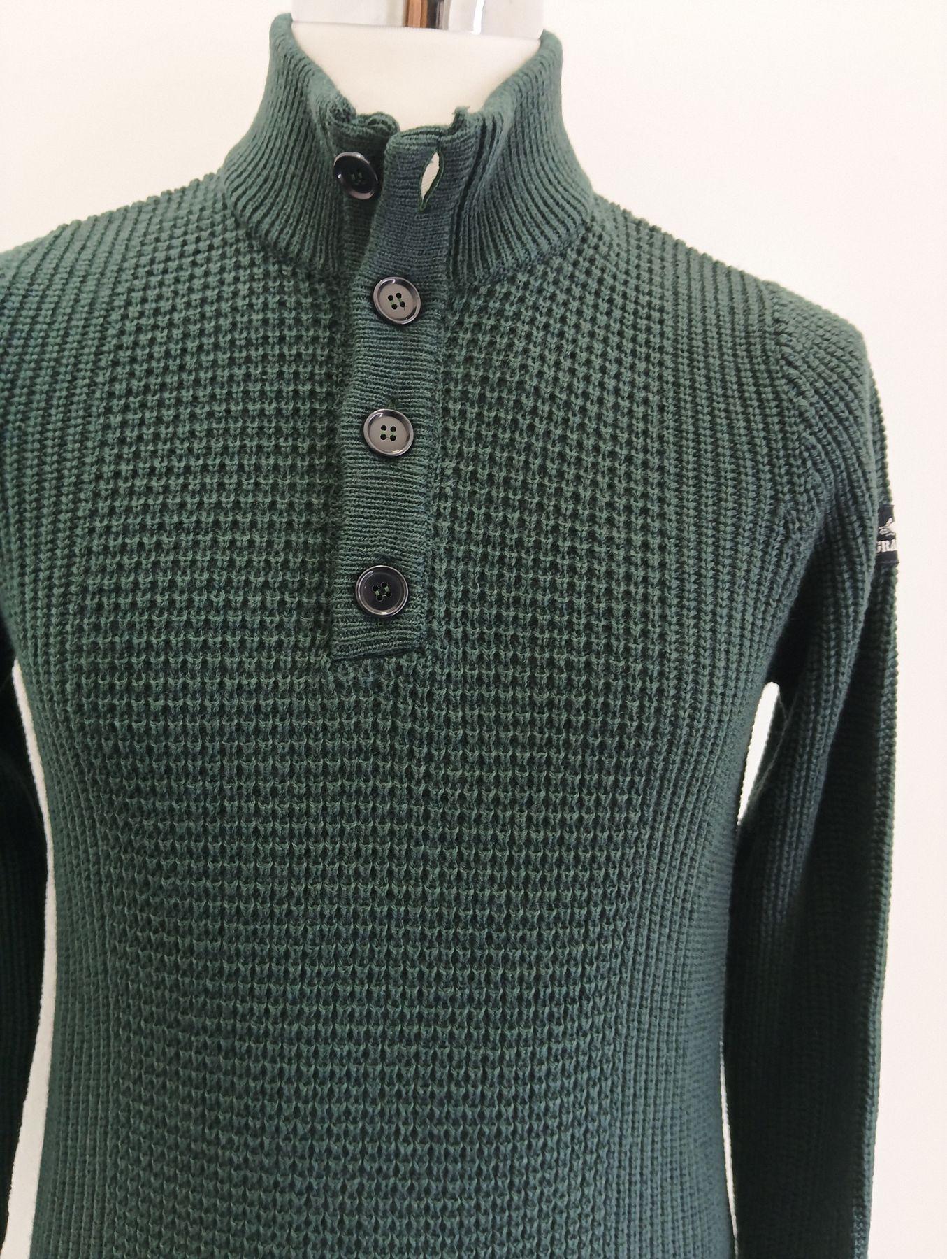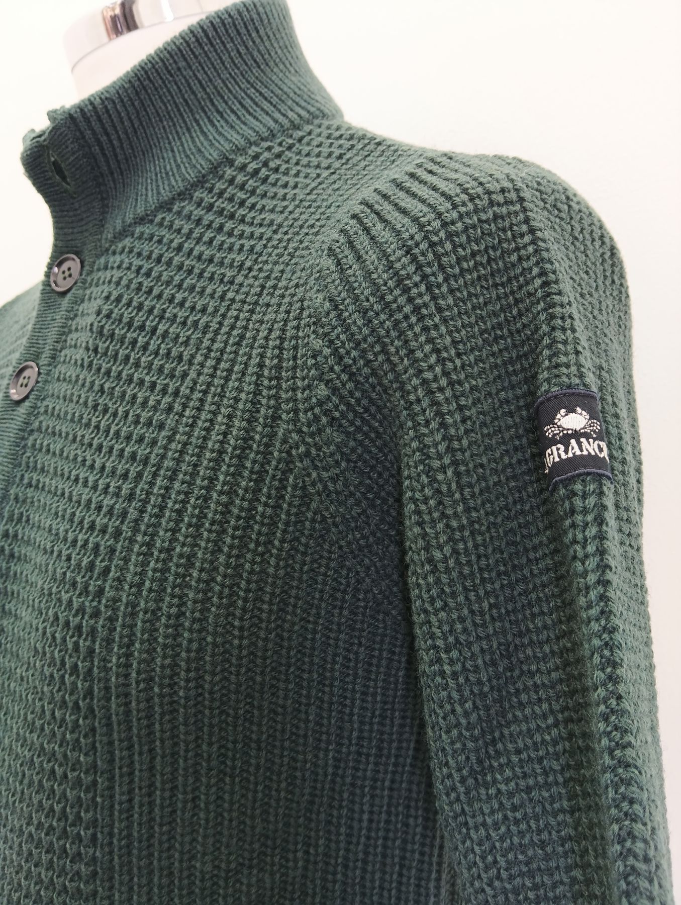 Maglione uomo collo lupetto con bottoni in filato doppiato a coste larghe e logo