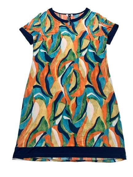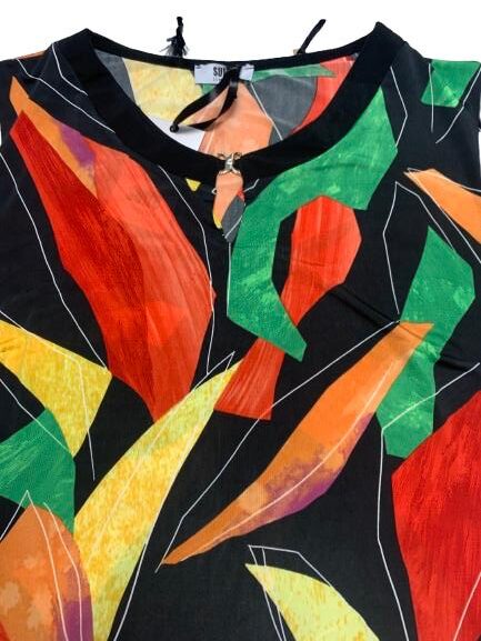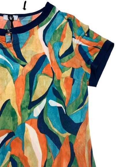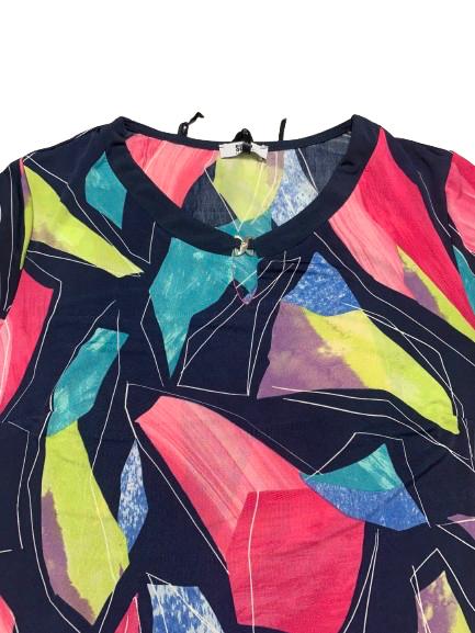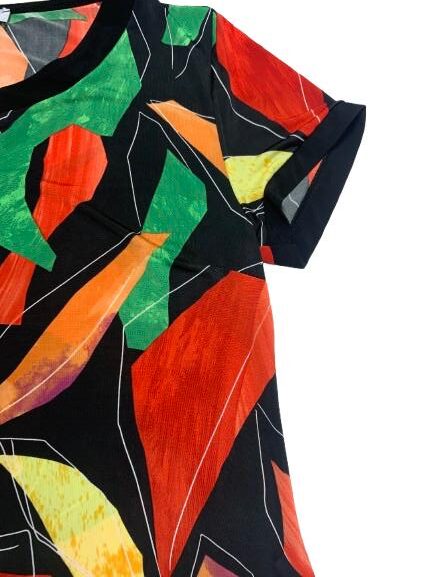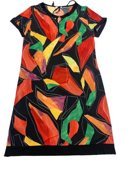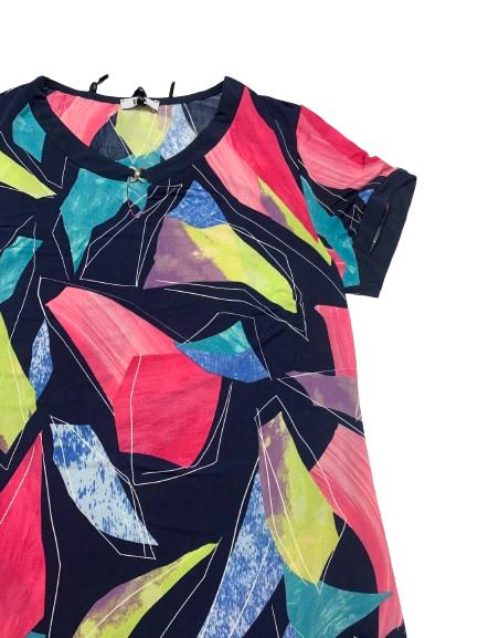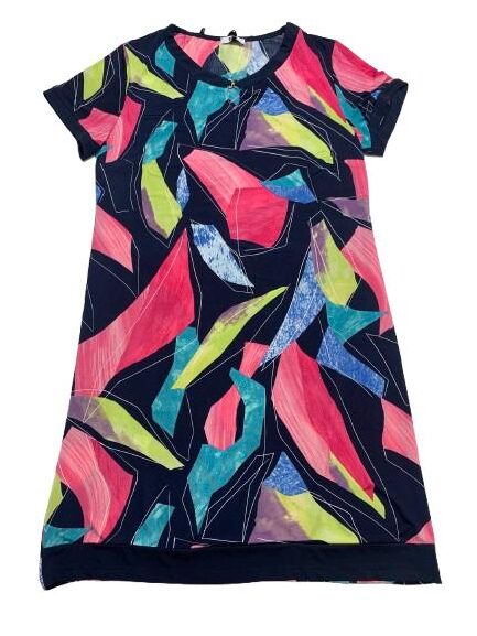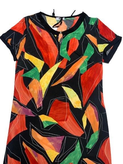 Abito donna in viscosa mezza manica girocollo con spacco e gancetto metallico linea morbida tessuto fluido fantasie varie