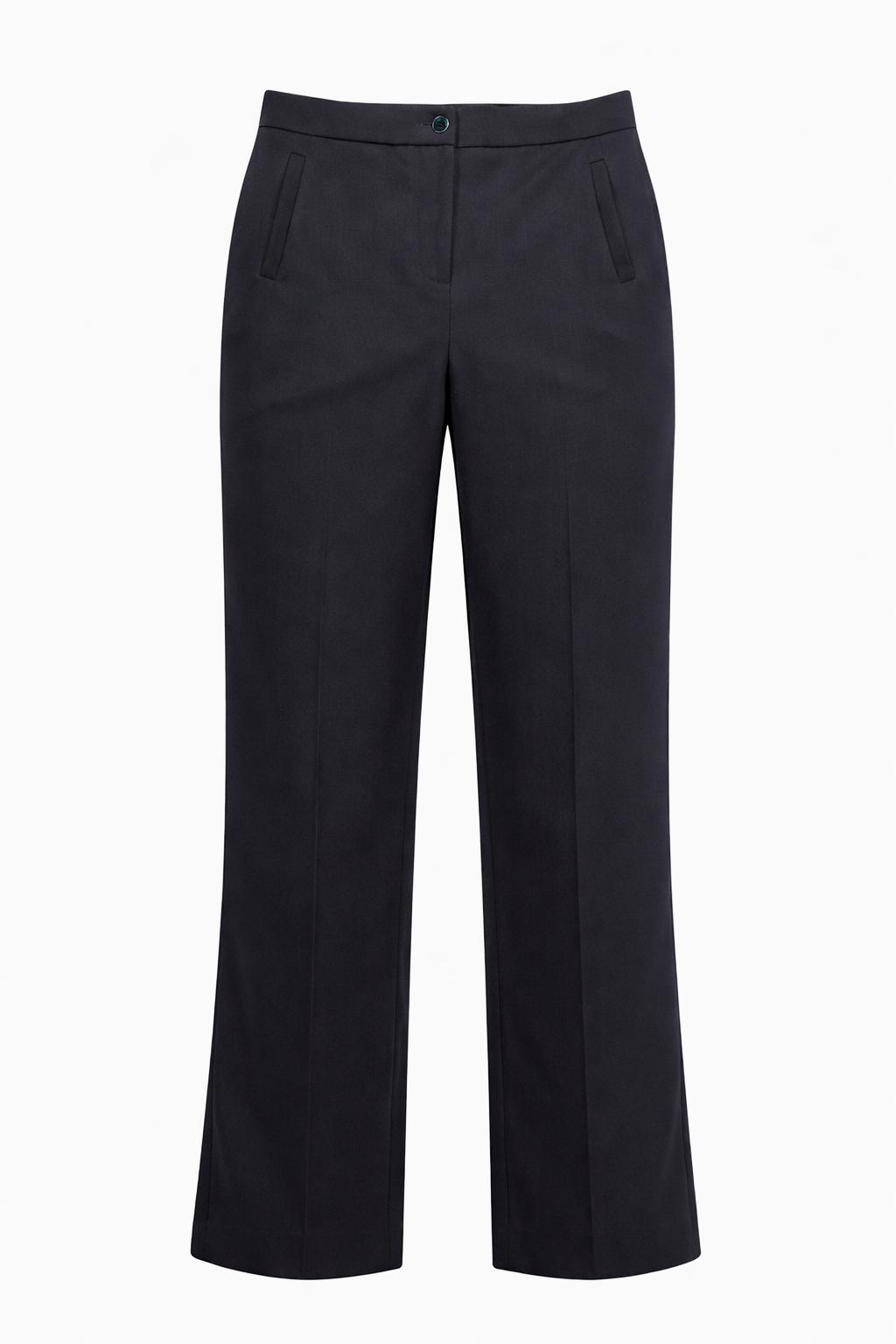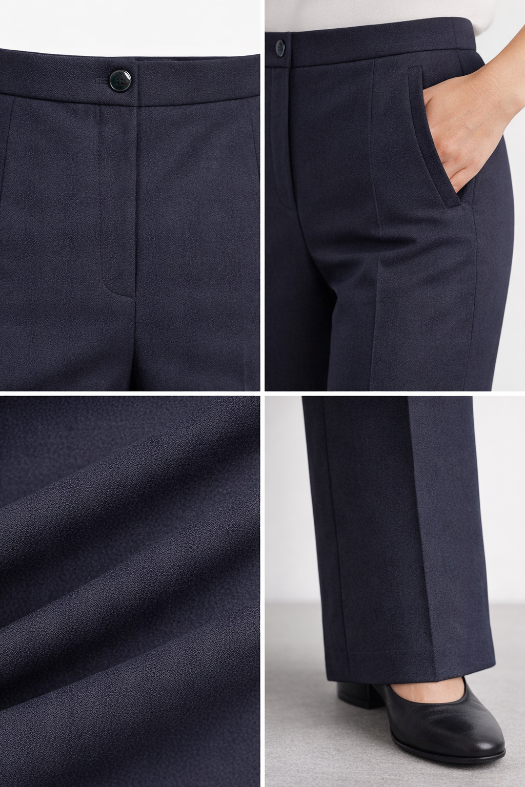 Pantalone Donna Mariarosaria B. in tessuto tecnico di poliviscosa con finte tasche laterali chiusura anteriore con cerniera e bottone bustino in vita e gamba ampia