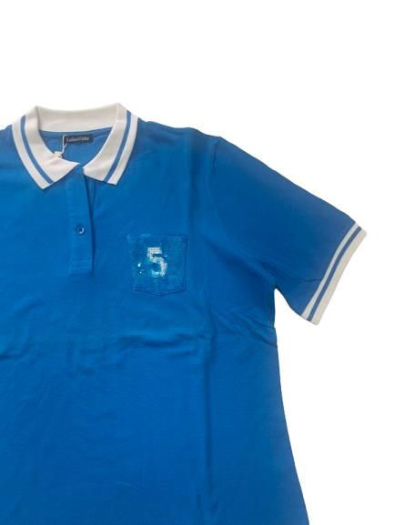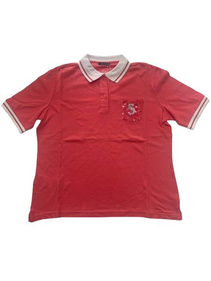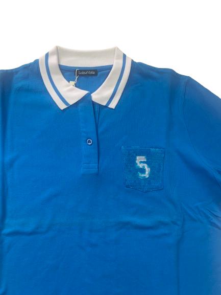 Polo donna Luisa Viola in cotone piquet mezza manica con taschino paillettato e collo a contrasto in bianco spacchetti laterali sul fondo