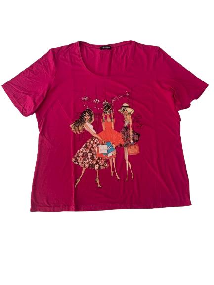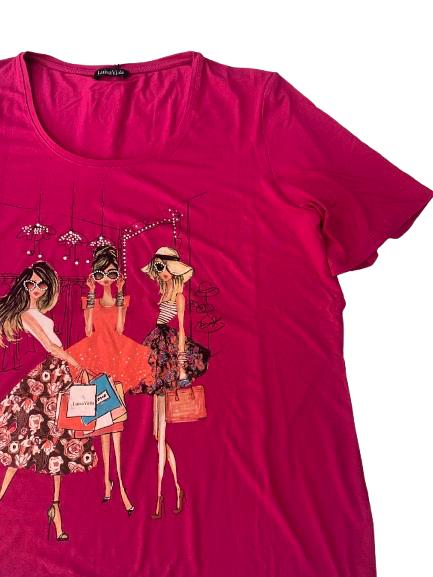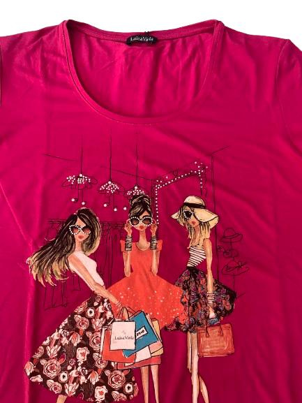 T-shirt donna Luisa Viola Collection in cotone mezza manica con stampa glamour anteriore e disegno in strass scollo rotondo ampio