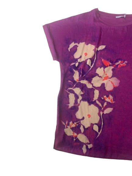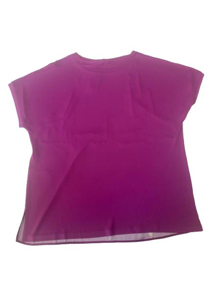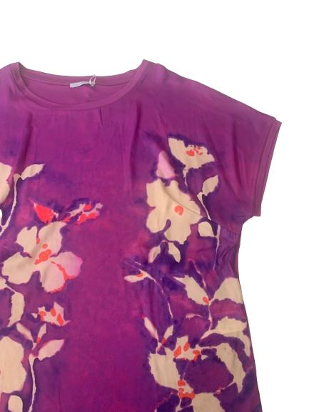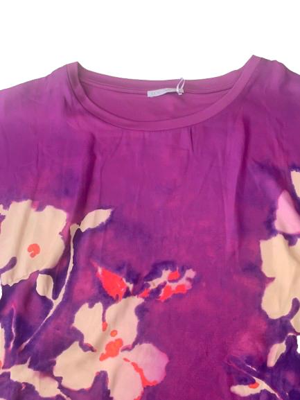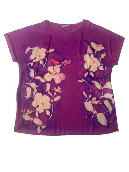 Blusa donna Luisa Viola in viscosa e poliestere manica scesa scollo a barca con stampa digitale sul pannello anteriore e fondo unito posteriore in viscosa