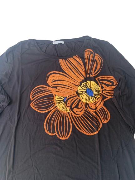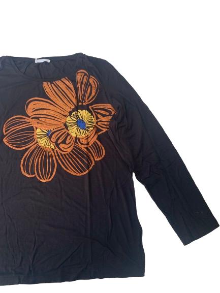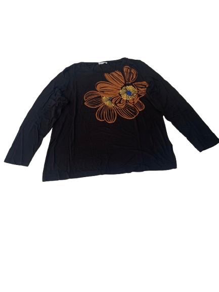 T-shirt donna Luisa Viola manica lunga girocollo in viscosa con stampa floreale etnica sui toni del marrone su fondo nero