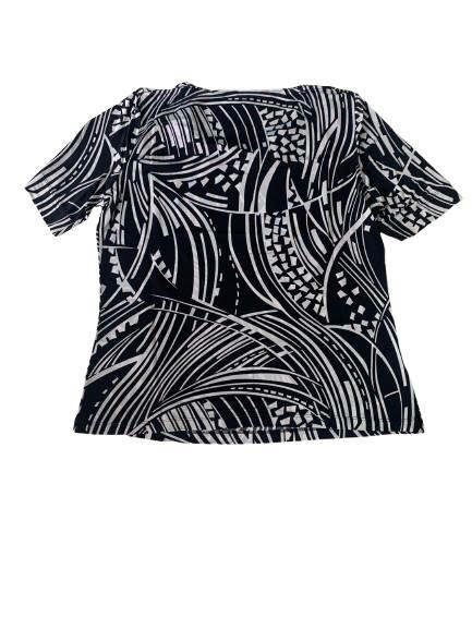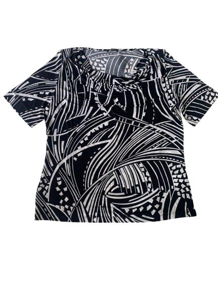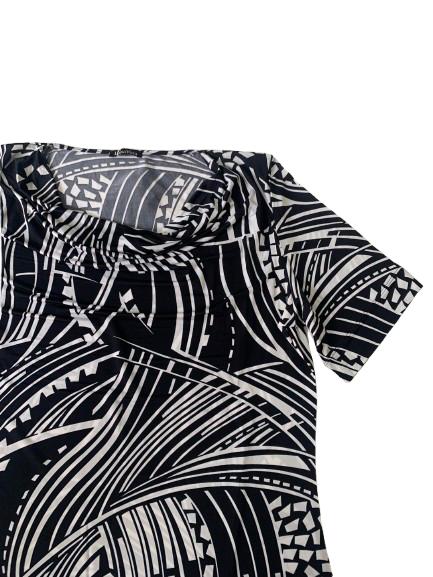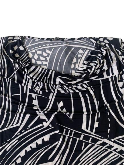 Blusa donna Luisa Viola mezza manica in viscosa collo a balza linea scivolosa fantasia geometrica bianca su fondo nero