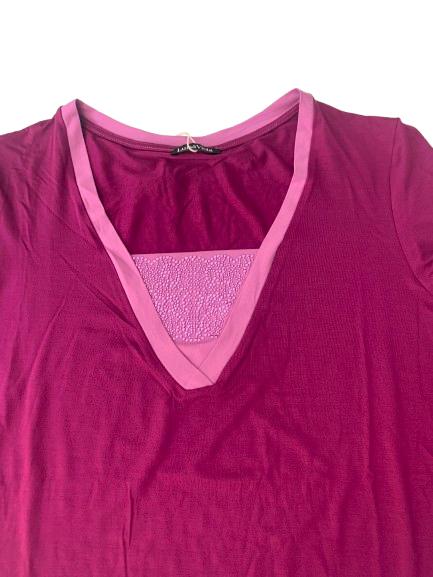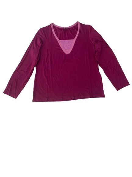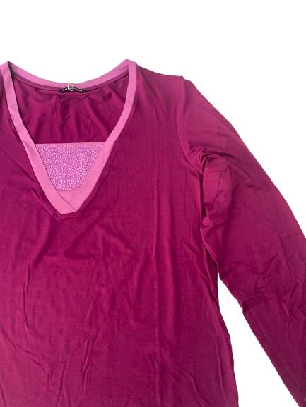 T-shirt donna Luisa Viola in viscosa manica lunga con profilo a contrasto di colore e scollo a V con ricamo con strass metallici