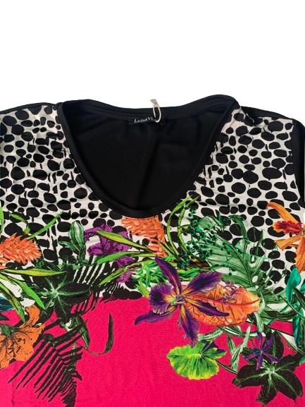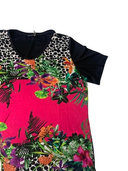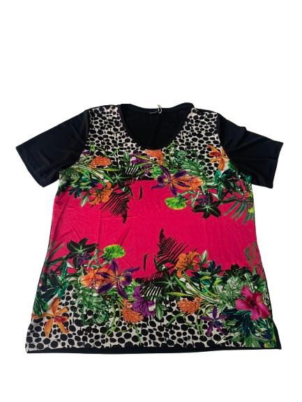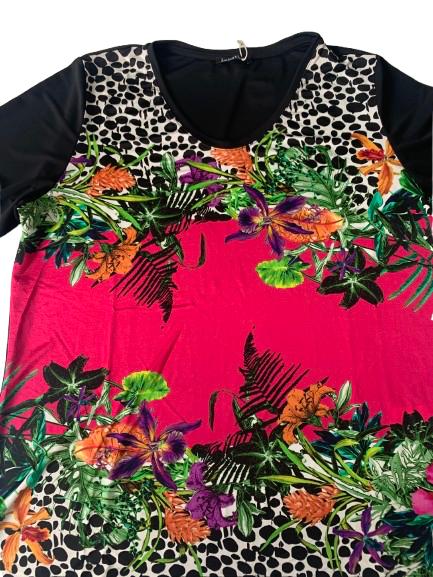 Maglia donna Luisa Viola in viscosa mezza manica tessuto fluida con stampa jungle su fondo nero