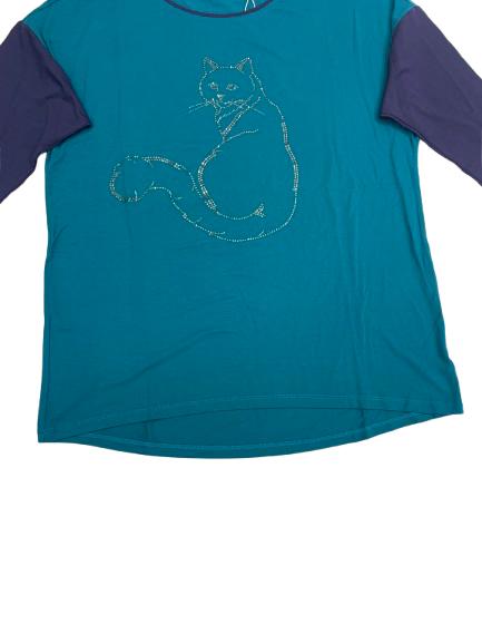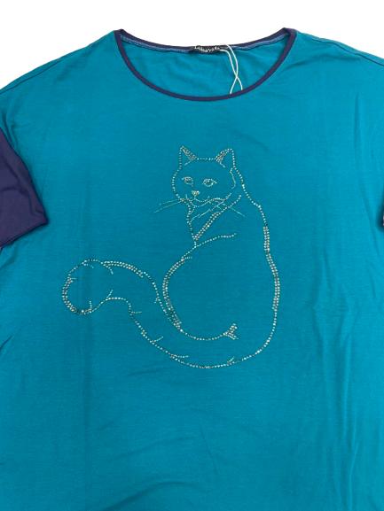 T-shirt donna Luisa Viola in viscosa manica a T con disegno in strass anteriore e manica ce profilo collo a contrasto