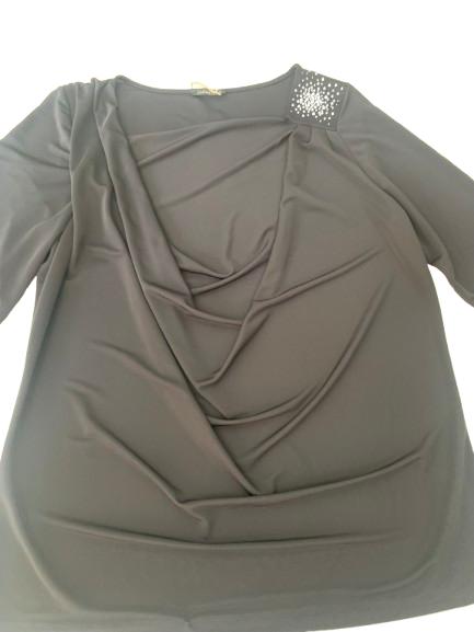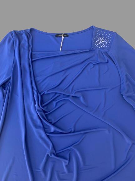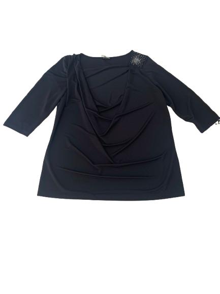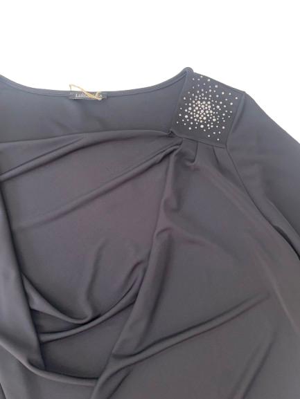 Blusa donna Luisa Viola in viscosa manica 3/4 linea morbida collo drappeggiato ricamo in strass da un lato tessuto fluido