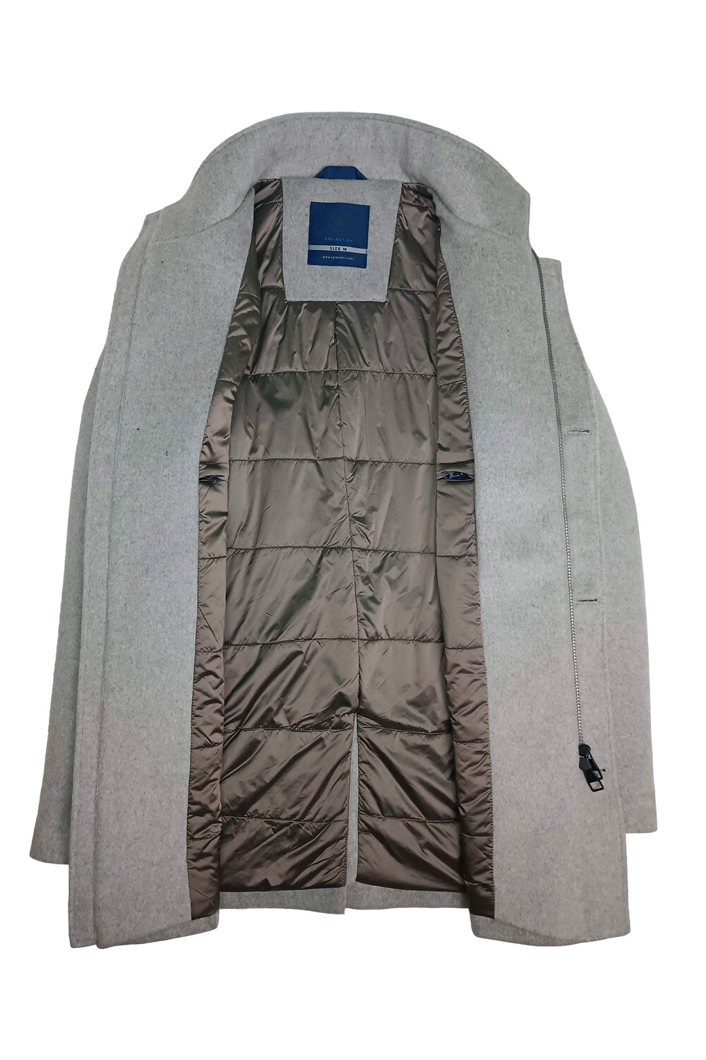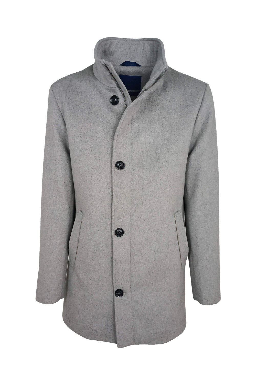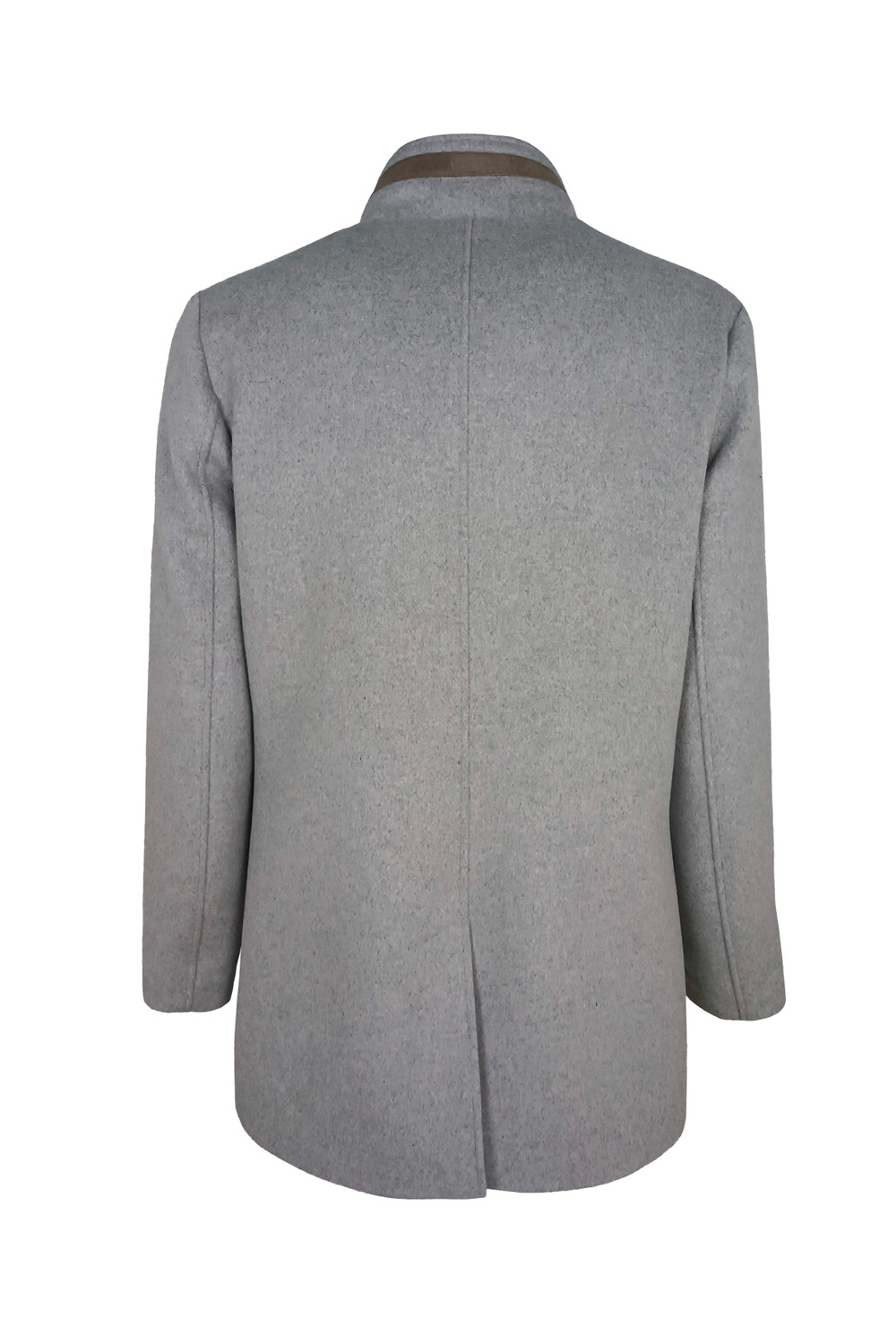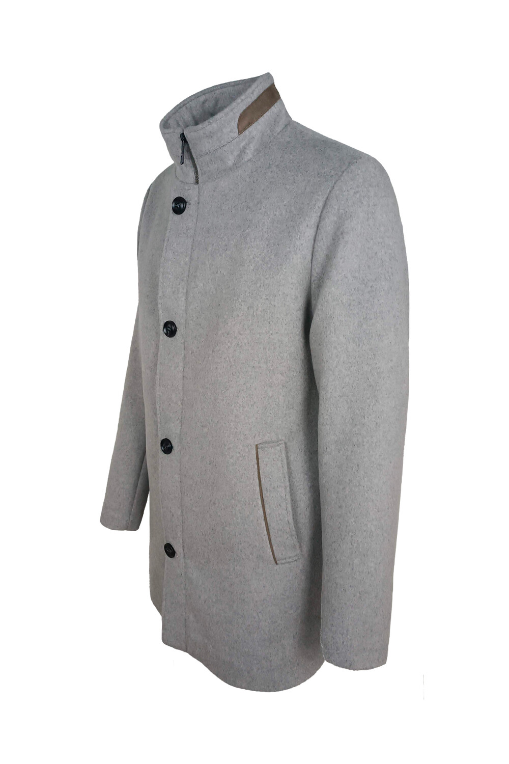 Giaccone uomo Il Granchio in panno con inserti in camoscio chiusura con bottoni e cerniera collo a listino leggermente trapuntato all’interno