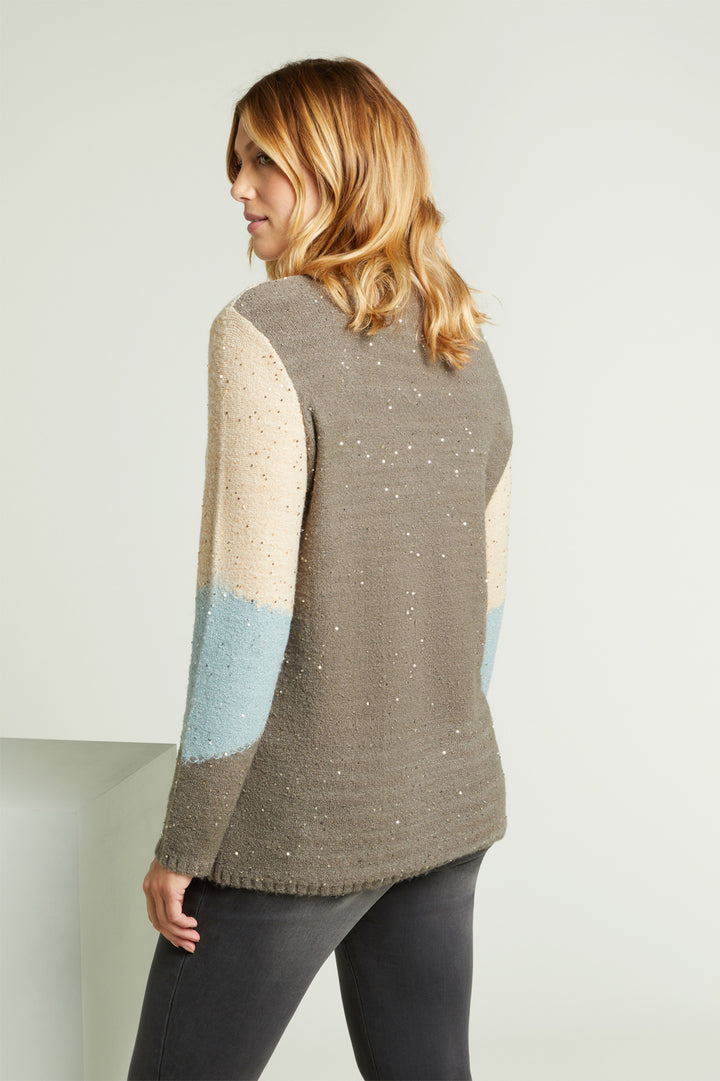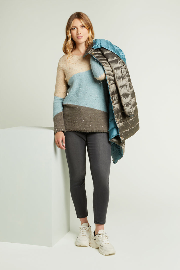 Maglia soft touch full paillettes dalla linea dritta maniche e parte anteriore a intarsio con inserto in lurex