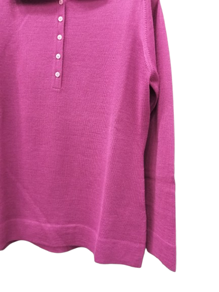 Maglia donna a polo in lana pettinata con bottoni linea basic