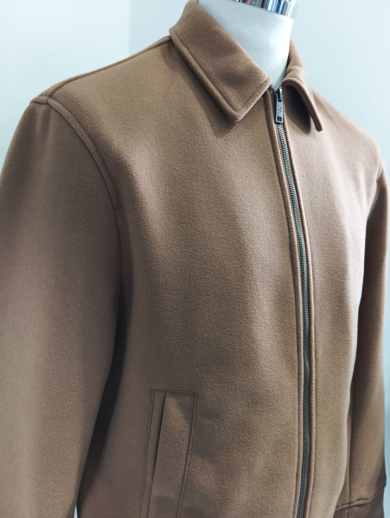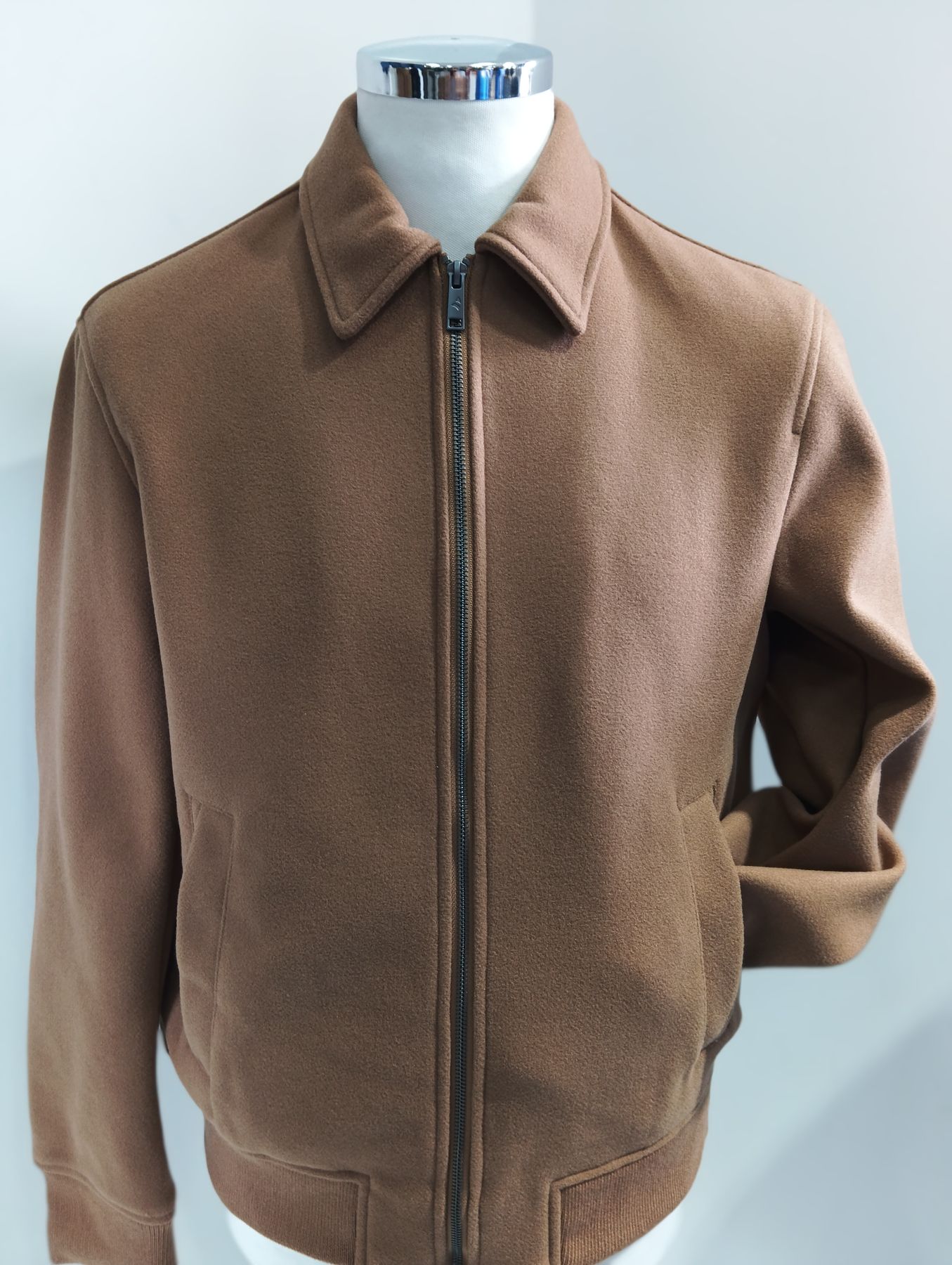 Bomber da uomo in flanella con colletto chiusura con zip e polsini ed elastico in maglia logo sul braccio