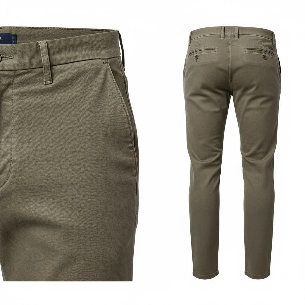 Pantalone chino in gabardine armaturato dal look elegante e senza tempo, realizzato in tessuto resistente e confortevole. Modello navigare con tasca america sul davanti e tasche posteriori a filetto, per uno stile curato e funzionale. La struttura della gabardine garantisce una vestibilità ordinata e un’ottima tenuta nel tempo, rendendo questo pantalone ideale sia per outfit casual raffinati che per abbinamenti più formali.