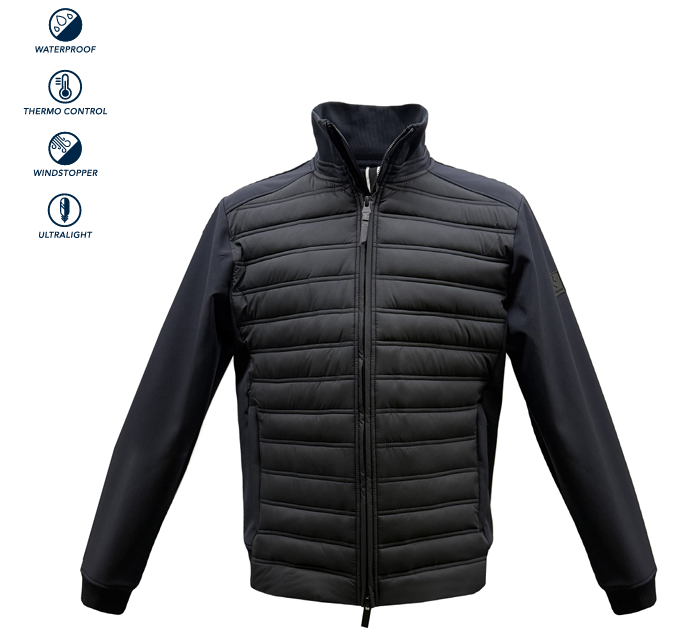 Giacca tecnica uomo Navigare trapuntata Softshell Hybrid, realizzata in tech bonded fabric ad alte prestazioni. La composizione in 92% poliestere e 8% elastane garantisce elasticità , comfort e libertà di movimento, offrendo al tempo stesso resistenza e protezione dagli agenti atmosferici. La struttura trapuntata assicura un buon isolamento termico mantenendo il capo leggero e confortevole, ideale per le mezze stagioni e per un utilizzo quotidiano. Il design ibrido softshell unisce funzionalità e stile moderno, rendendo la giacca perfetta sia per il tempo libero che per un look casual-sportivo.