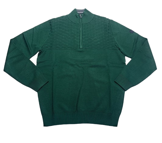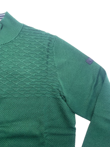Maglia uomo mezza zip Navigare in maglina di viscosa con intarsio a rombi abbinato a punto pallino con zip con profilo e interno collo a contrasto di colore