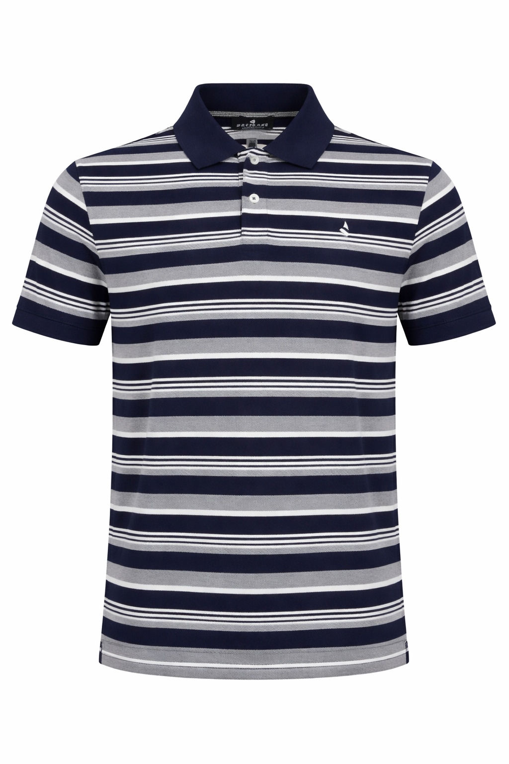Scopri una polo uomo elegante e versatile, perfetta per un look curato ma informale. Il design a righe orizzontali nei toni blu navy, bianco e grigio dona un tocco moderno e raffinato, ideale per ogni occasione: dal tempo libero agli appuntamenti casual.