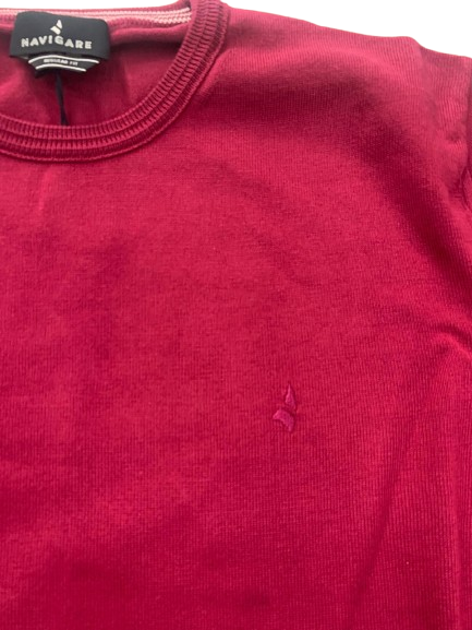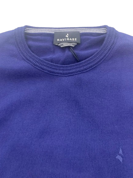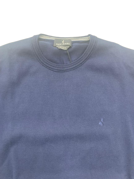 Maglia girocollo uomo Navigare in filo di cotone linea basic tinta unita con interno collo rigato logo altezza cuore